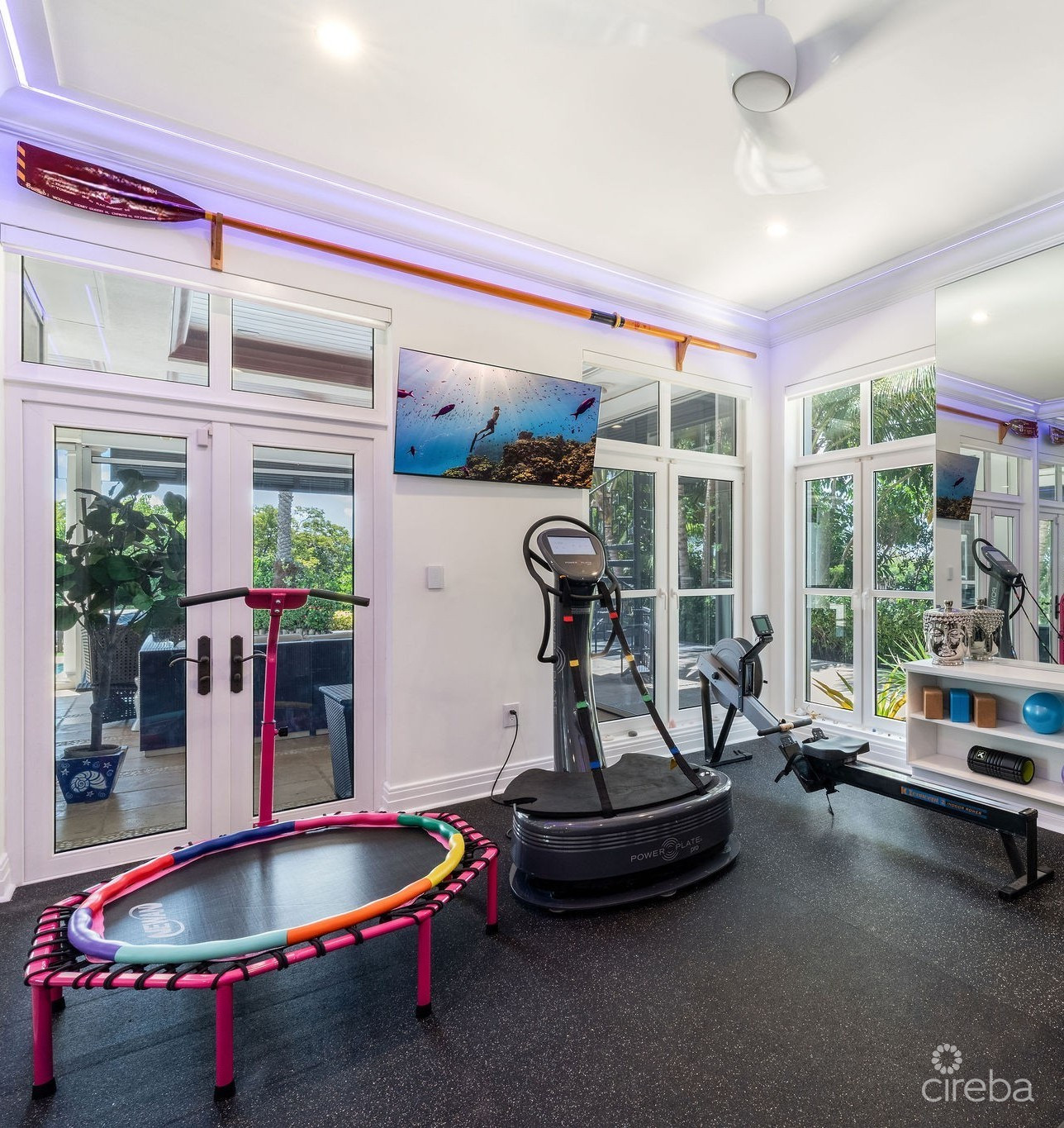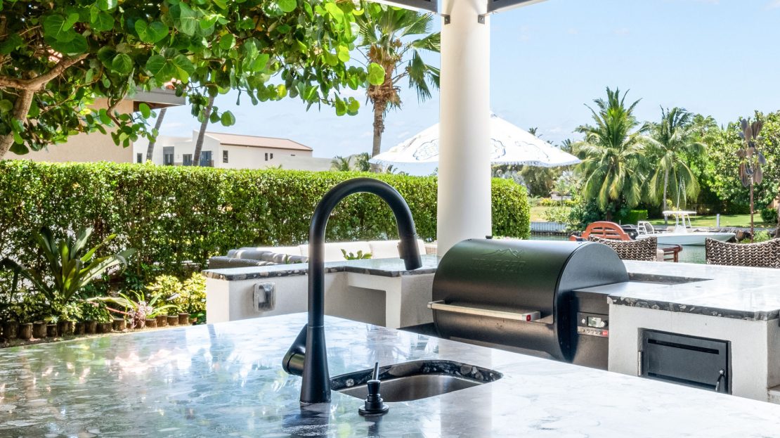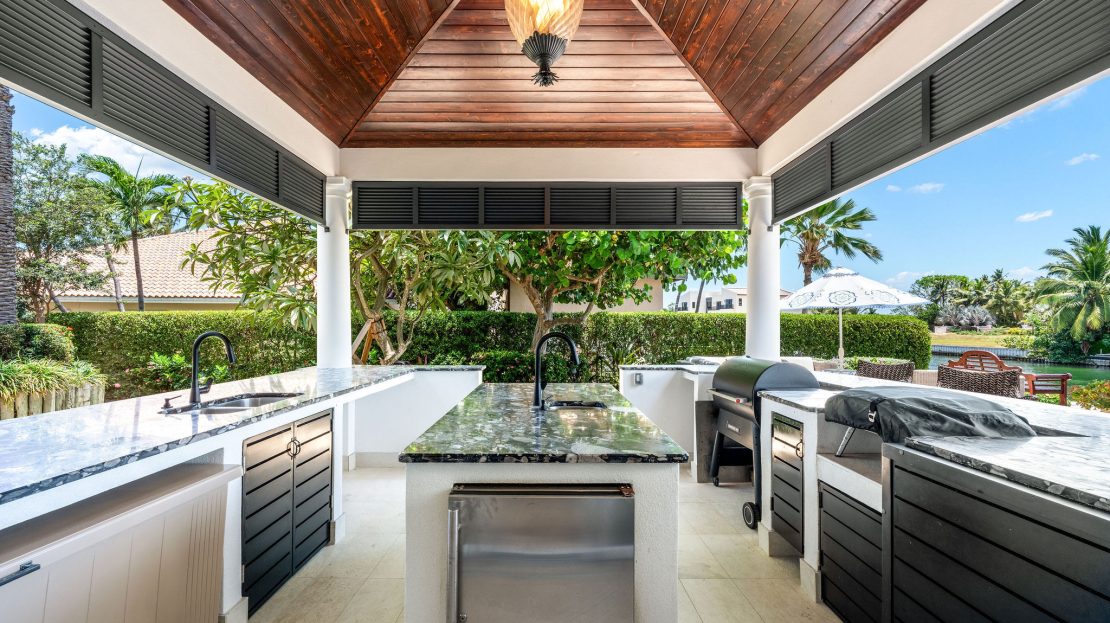 Outdoors, the resort-style setting is pure Cayman paradise. A large custom swimming pool with a 12.5-meter lap lane invites both fun and fitness, complemented by a jacuzzi and outdoor shower. The expansive covered patio captures the cooling trade winds and features automatic retractable screens for year-round enjoyment.