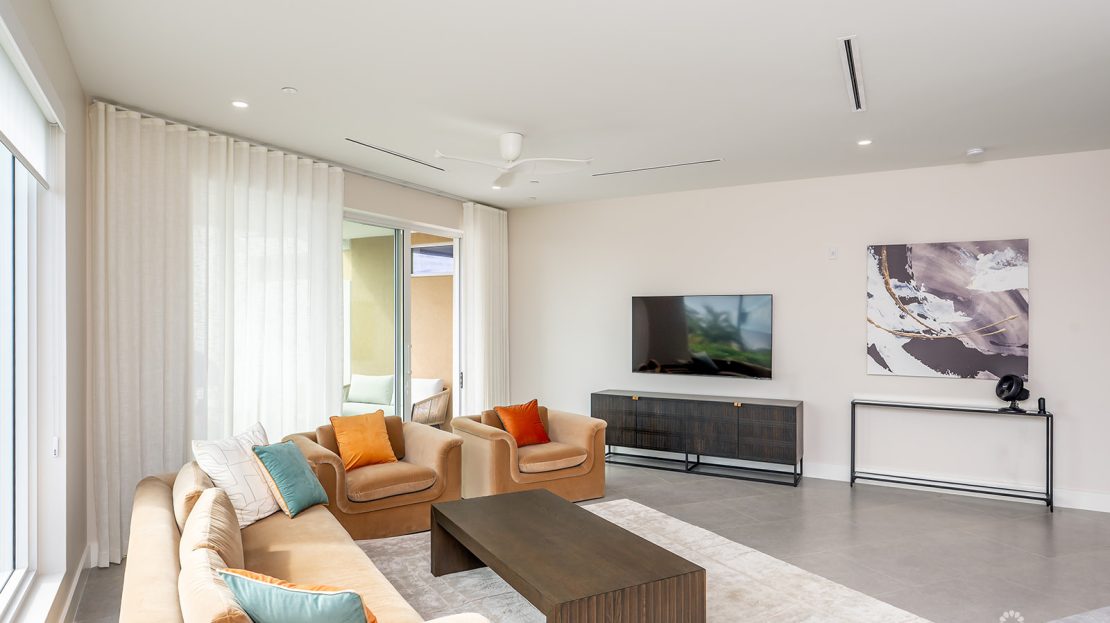 Amenities at Point West extend the sense of resort-level ease, offering a fitness center, sunset lounge and bar, open-air theatre, and a full-service dive academy with retail outlet. The rooftop Sky Deck offers a panoramic pool, hot tub, sun terraces, and two outdoor kitchens with BBQ stations, creating a private resort atmosphere reserved solely for owners and their guests.