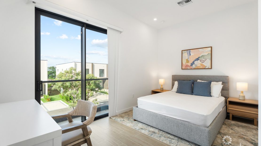This two-bedroom, two-and-a-half-bathroom townhome offers modern comfort with a smart layout and thoughtful design. Bright and open, the living space features 10-foot ceilings, clean finishes, and an easy flow from kitchen to dining to lounge. Upstairs, both bedrooms have ensuite bathrooms and built-in wardrobes, offering space, privacy, and functionality. Outside, a private patio creates a quiet spot to unwind.