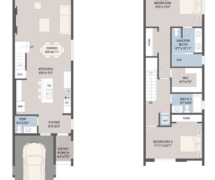 Residents enjoy resort-style amenities, including a large communal pool, a children’s splash park, a dog park, and a beautifully designed grilling area for entertaining. Walking paths and green spaces offer room to relax or get your steps in. Each home includes a private carport or garage, dedicated parking, and is wired for EV charging.