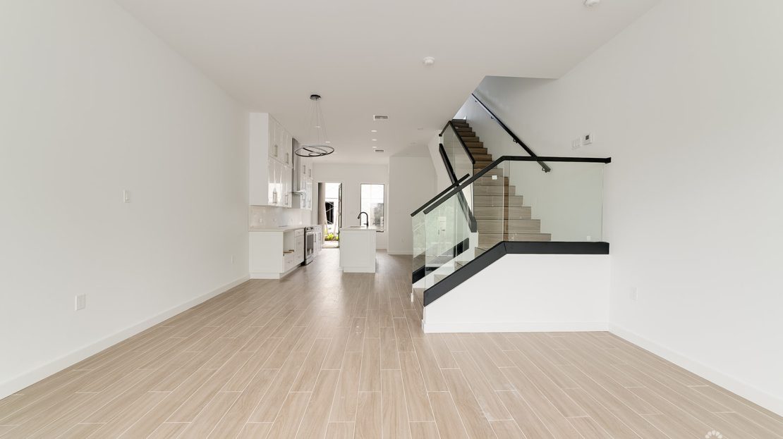 Designed for seamless indoor-outdoor living, townhomes feature 8ft sliding glass doors opening to a covered patio, while villas offer two sets of sliding doors leading to a private pool and fenced yard. A Romeo and Juliet balcony with sleek glass railings enhances each townhome. Residents enjoy resort-style amenities, including a large communal pool, a bright and spacious children’s splash park, a dog park, and a beautifully designed grilling area for entertaining. Walking paths and green spaces create a serene atmosphere, while private carports or garages, designated parking, and electric car charging station readiness add convenience.