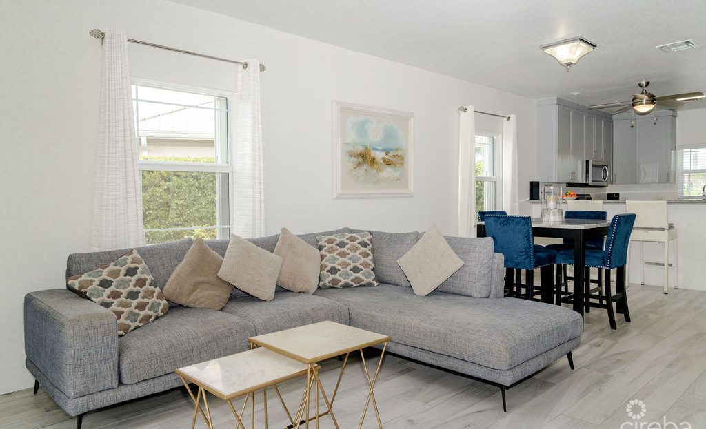 Open Living Plan: Seamlessly connecting the kitchen to the living room, this home is designed for today’s lifestyle complimented with fully turnkey modern furnishings.