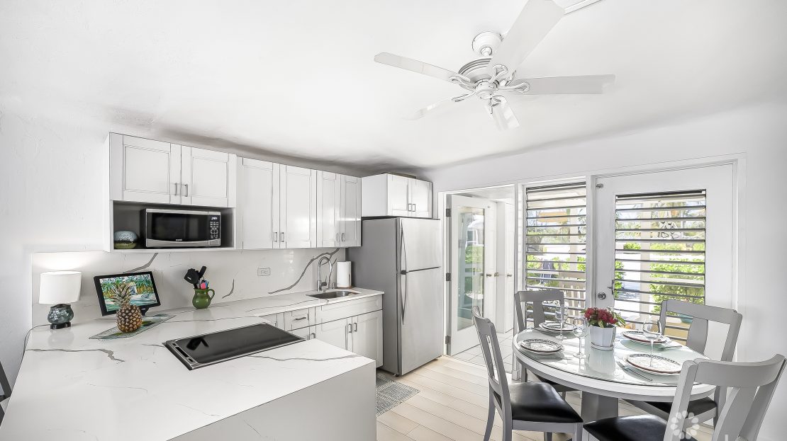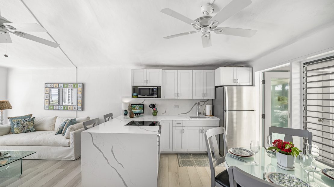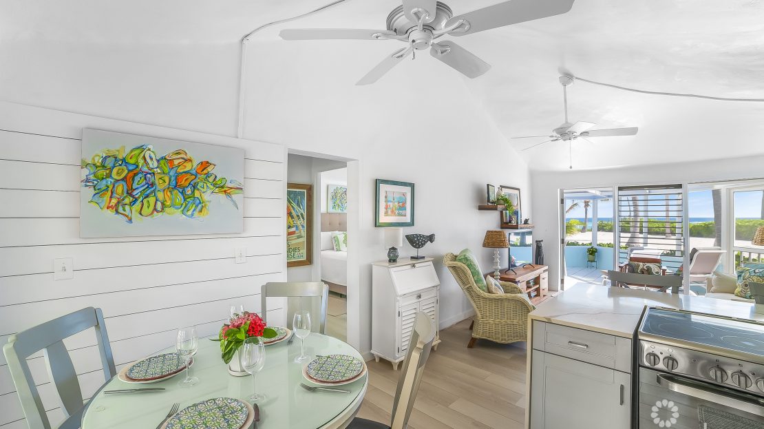 Enjoy an expansive 400-foot white-sand beach shared among only 16 intimate units (one- and two-bedroom only), providing rare privacy and space. The reef-protected shoreline delivers some of the island’s finest snorkeling right offshore—vibrant coral, tropical fish, and calm waters just steps from your door.