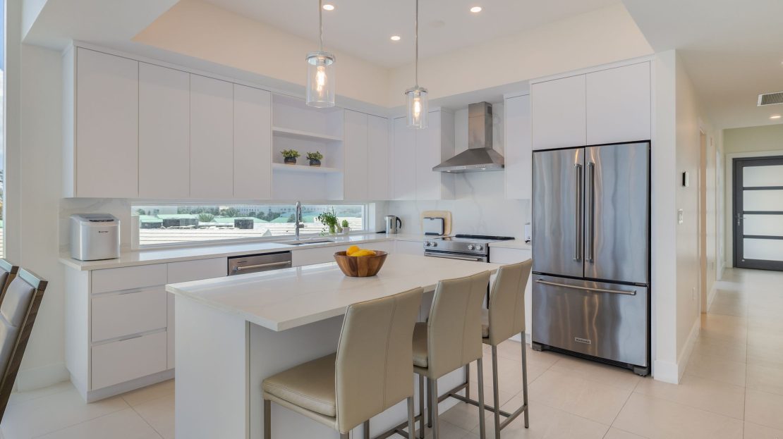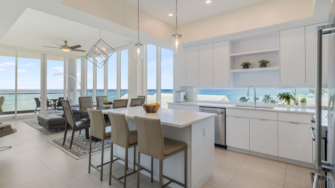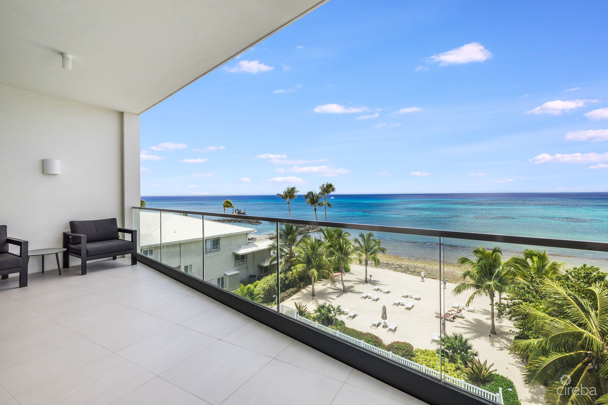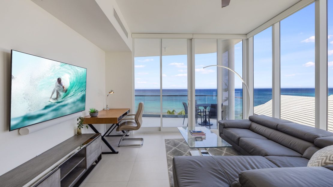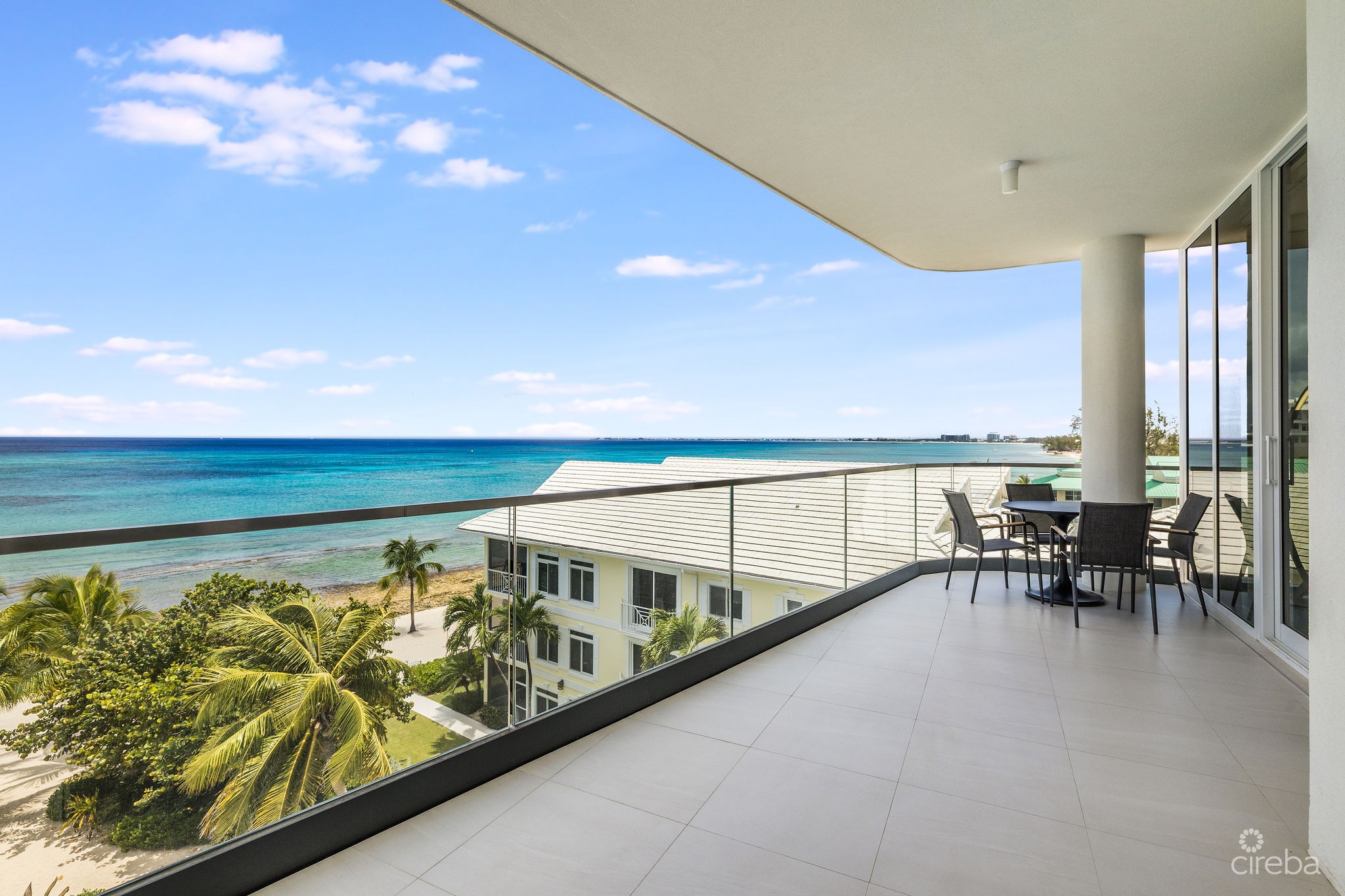 A gorgeous wide balcony on the beachfront is ideal for sunsets, lounging, dining, and entertaining. If you truly want the very best beachfront lifestyle, this residence offers unprecedented bespoke living on Seven Mile Beach. It is completely turnkey – fully furnished with brand new furnishings, bedding, linens, comprehensive kitchen package of everything that you would ever need including countertop appliances, and an enhanced audio visual package with Samsung Art Frame TVs in the living room and each bedroom,