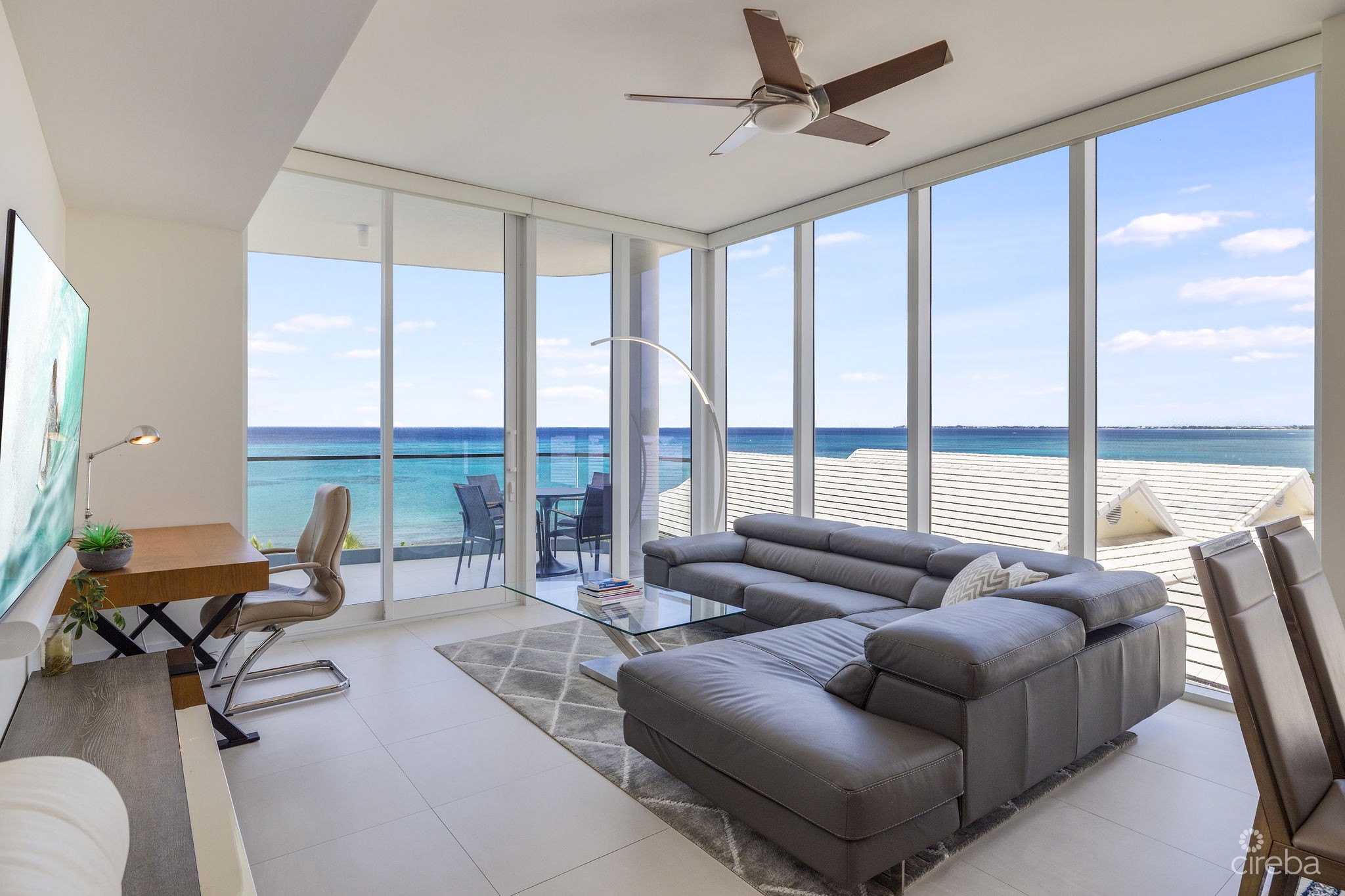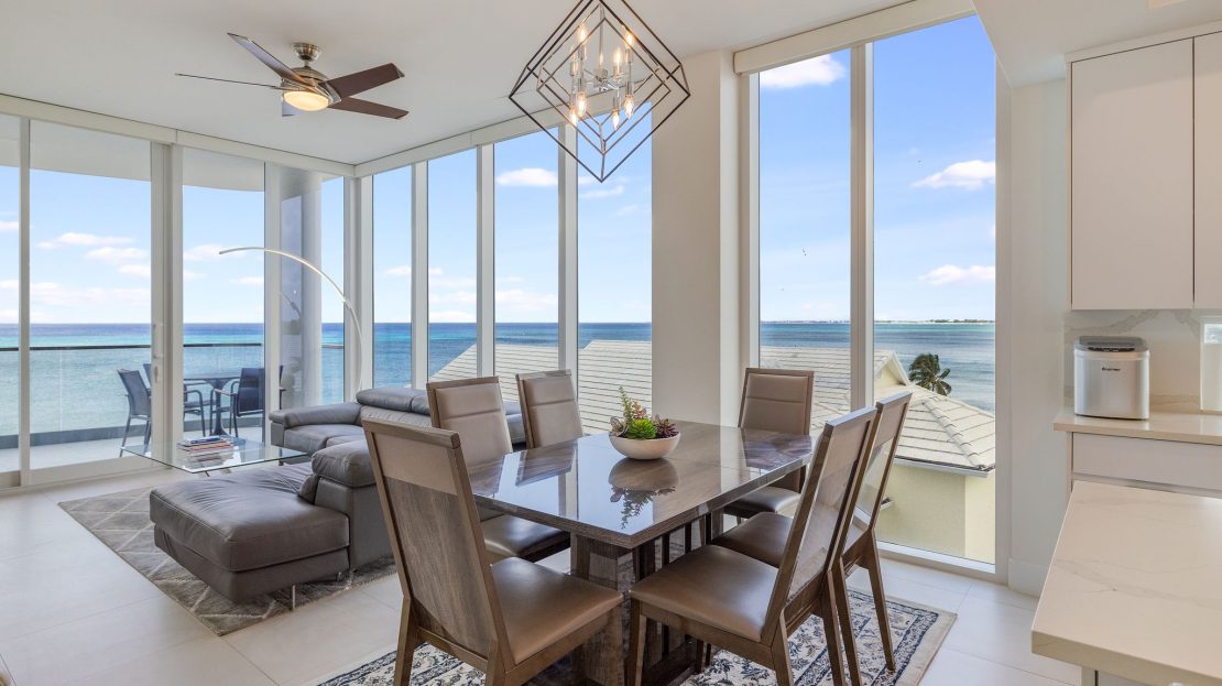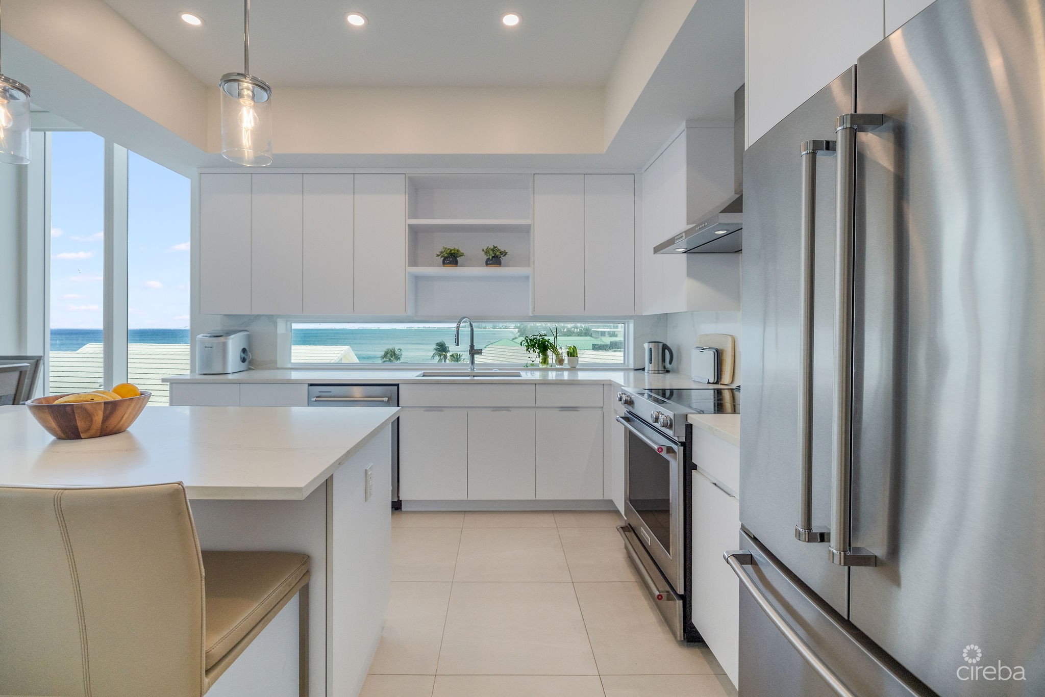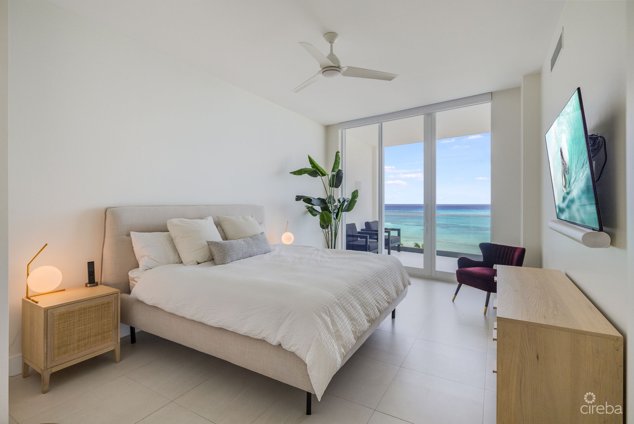 Absolutely stunning residence and views from everywhere! The perfect height for privacy with spectacular sights through the floor to ceiling windows. Views of the palm trees, pool, beach and Caribbean Sea, and Seven Mile Beach shoreline all the way to Northwest Point. Not too high in the building to be able to enjoy all of this. Even the back bedroom, bathroom, and kitchen
