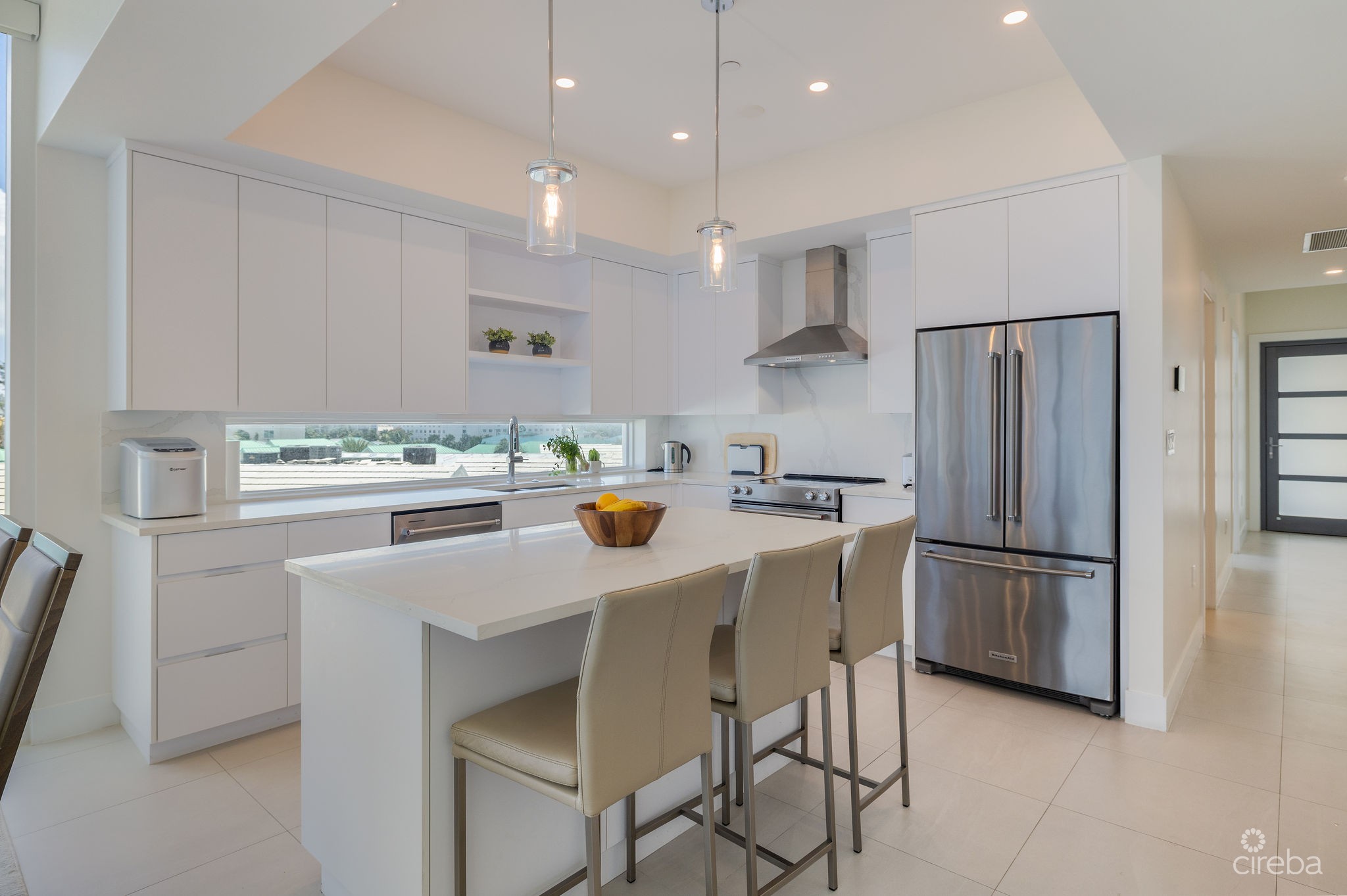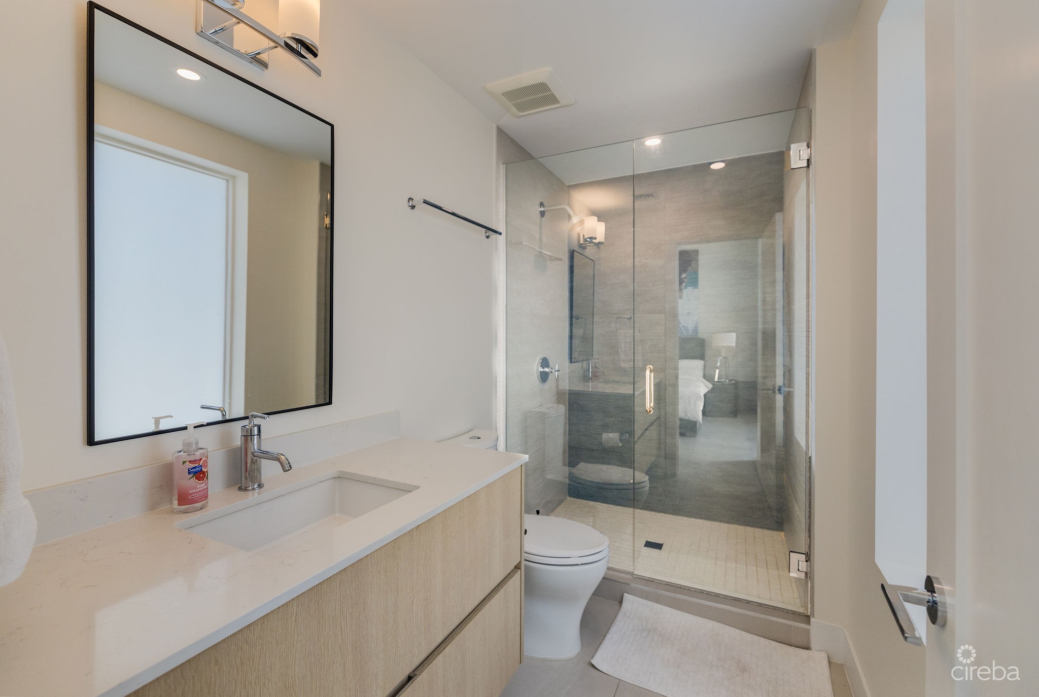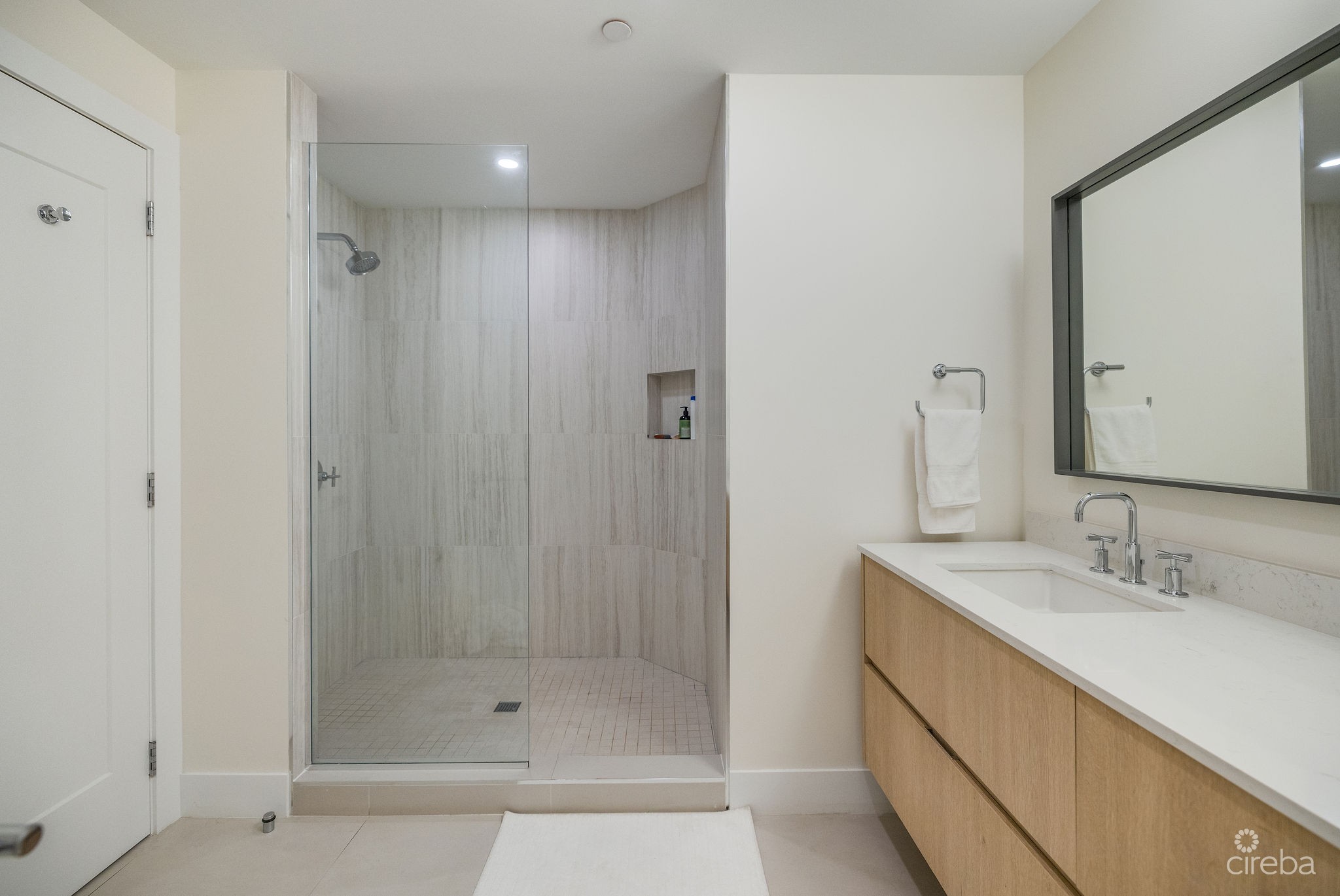 Absolutely stunning residence and views from everywhere! The perfect height for privacy with spectacular sights through the floor to ceiling windows. Views of the palm trees, pool, beach and Caribbean Sea, and Seven Mile Beach shoreline all the way to Northwest Point. Not too high in the building to be able to enjoy all of this. Even the back bedroom, bathroom, and kitchen