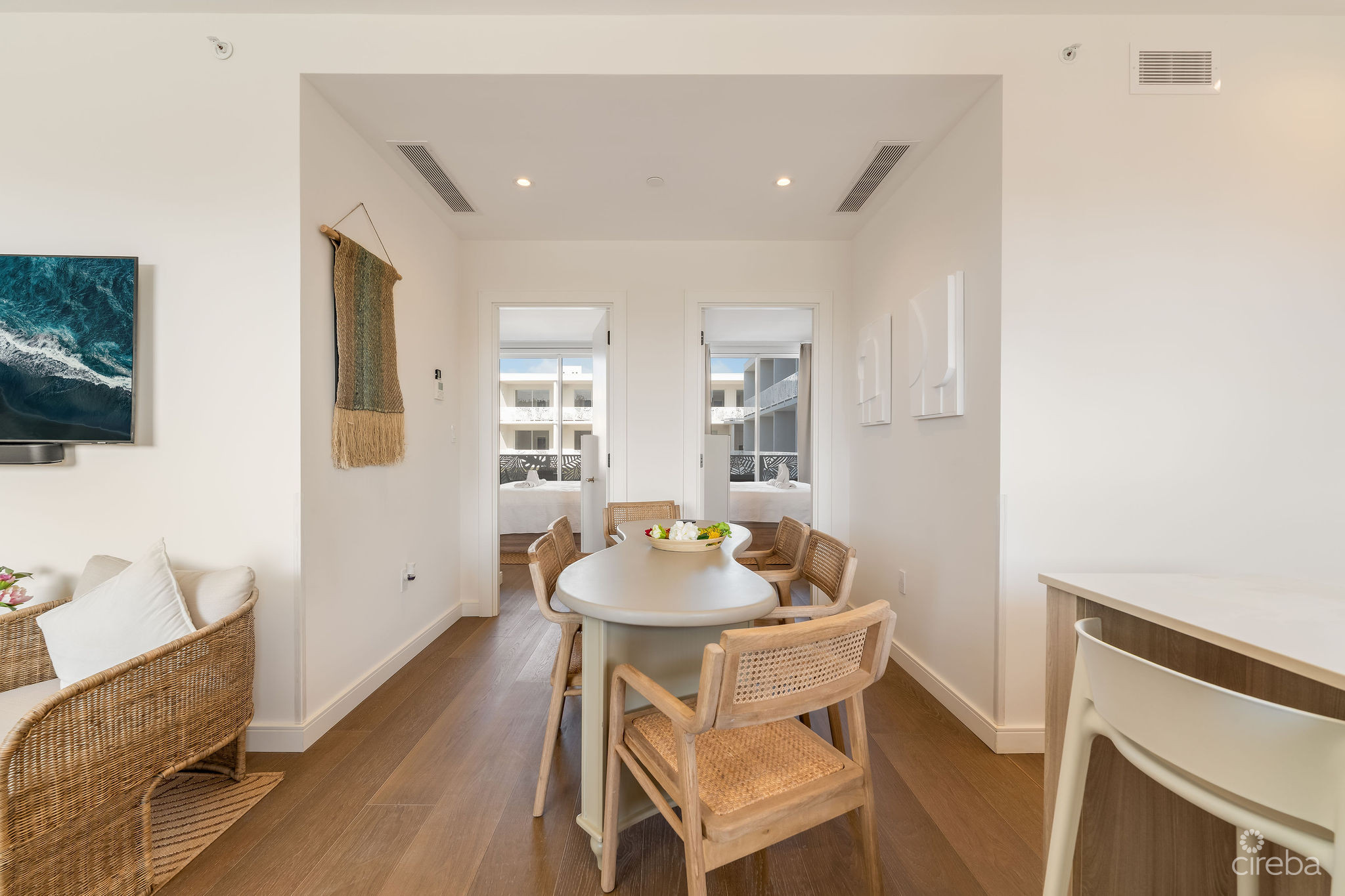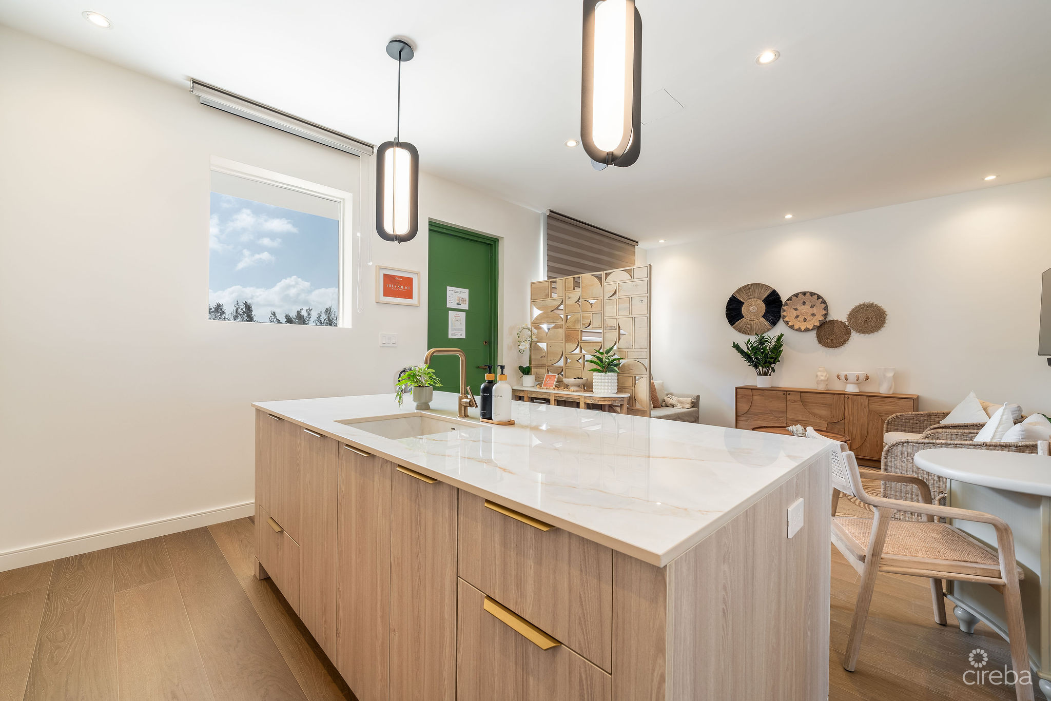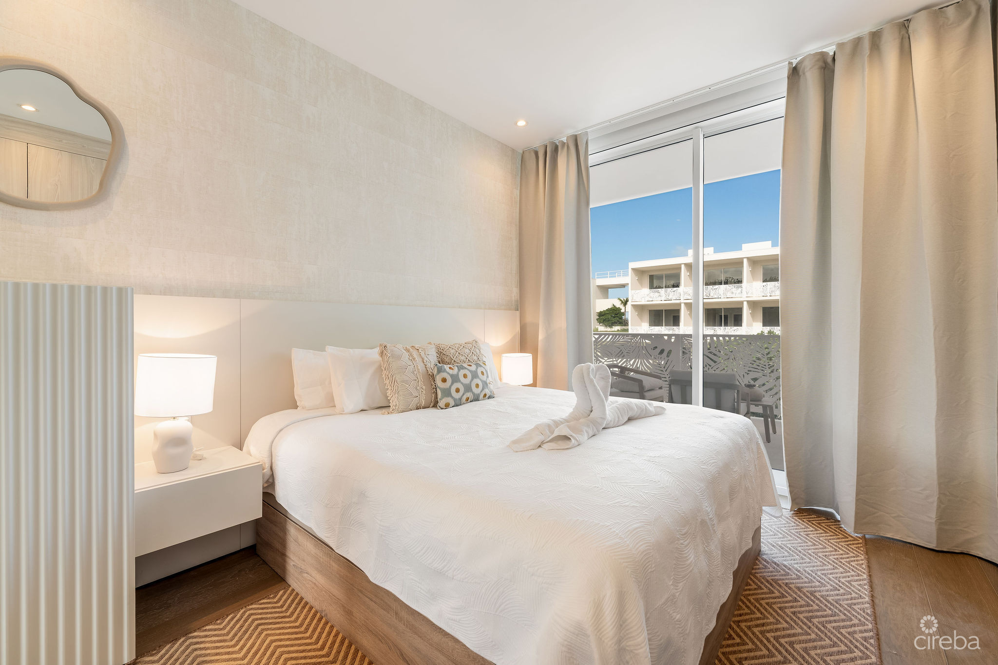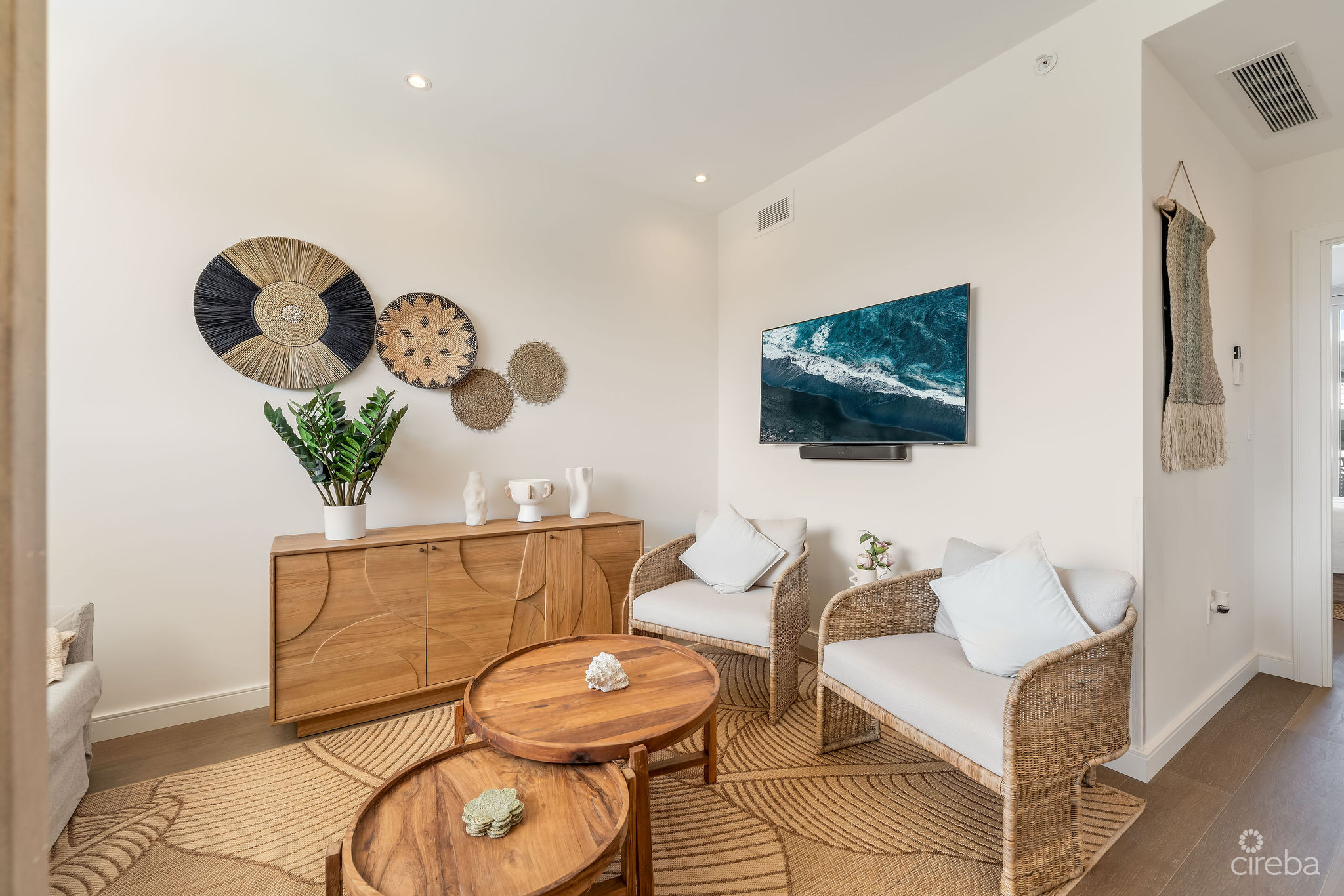 Unit #40 at The Grove Too offers contemporary island living in one of the most desirable locations along Seven Mile Beach. This beautifully designed two-bedroom, two-bathroom residence features approximately 1,183 sq. ft. of thoughtfully planned living space, blending modern comfort with relaxed Caribbean style.