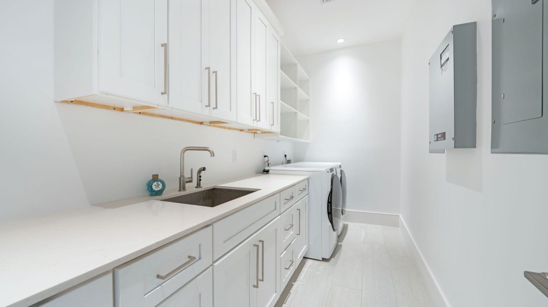 Adding to the home’s practicality, there is a spacious laundry and utility room fitted with Whirlpool washer and dryer, as well as a walk-in storage closet conveniently located off the main living area.