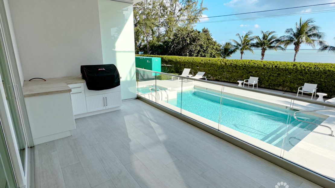 Step into an open-plan living space featuring 10-foot ceilings that elevate the bright and airy ambiance. The seamless flow between the living room, dining area, and modern kitchen makes it perfect for hosting gatherings or enjoying tranquil mornings by the sea. The private patio, overlooking the reef-protected waters of South Sound, invites you to savor unobstructed beach views from the comfort of your home. The outdoor kitchen area makes grilling for your family or guests a dream.
