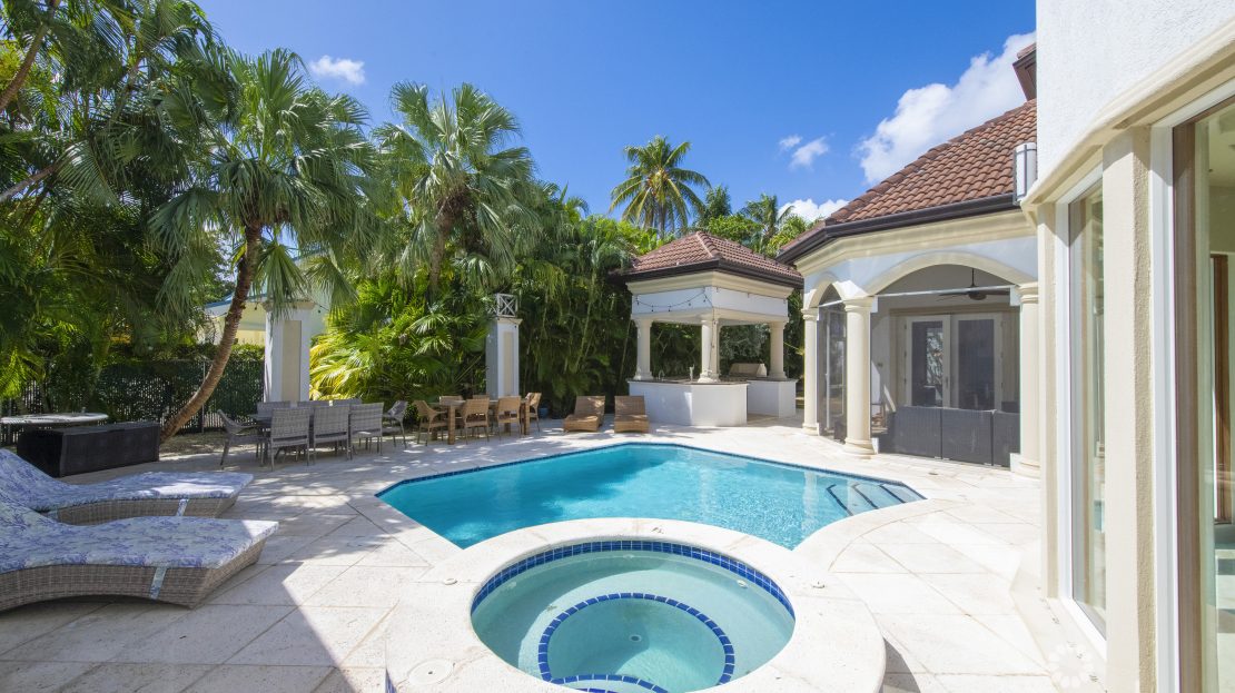 For additional privacy, a separate 1-bedroom, 1-bathroom guest house complements the property, along with a 3-car garage. Outside, the lushly landscaped garden frames a stunning pool area complete with an outdoor grill and bar for al fresco dining and entertaining.