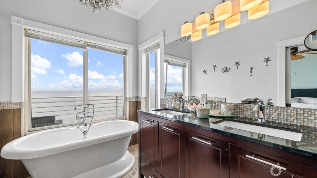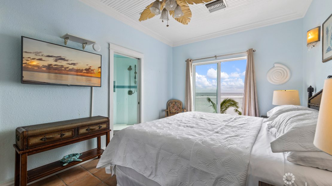 The master suite, complete with a private balcony, offers a luxurious retreat, featuring a spacious bathroom with a soaking tub overlooking the ocean. While the property holds immense potential, it does require some tender loving care to restore it to its full glory.