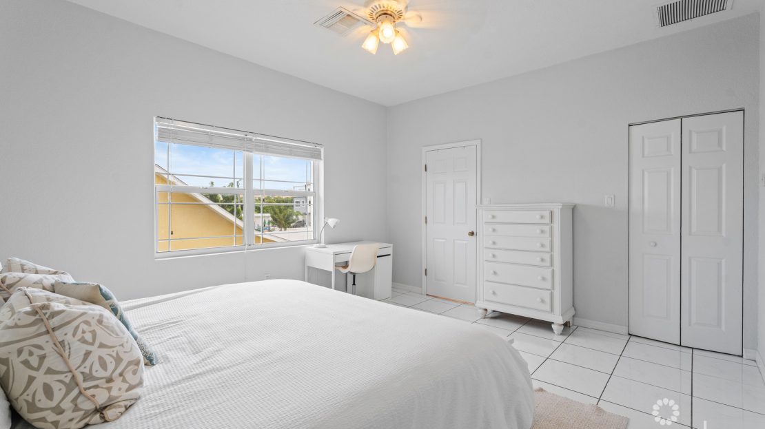Upstairs, both bedrooms are generously sized and include en-suite bathrooms, offering privacy and flexibility for owners, guests, or rental use. Neutral finishes, tiled floors throughout, and ample natural light create a clean, move-in-ready interior.