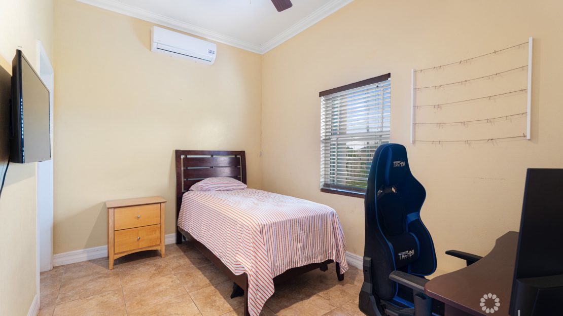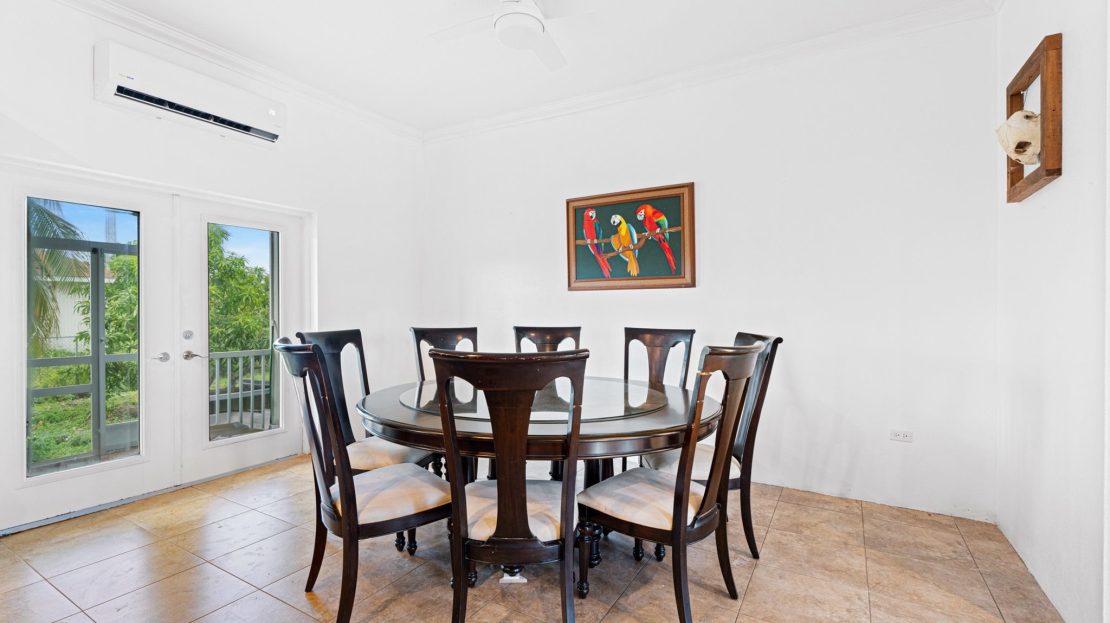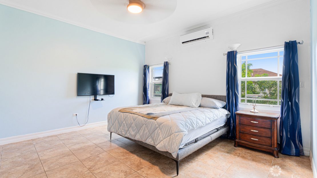 This charming house with screened back patio and shaded front porch exudes Caribbean charm. The handsome entrance takes you through to living room, dining and kitchen, with back door to screened patio. To the right, from the lobby is the large master and 3rd bedroom/Office. At the other side of the house is a second primary bedroom with ensuite.