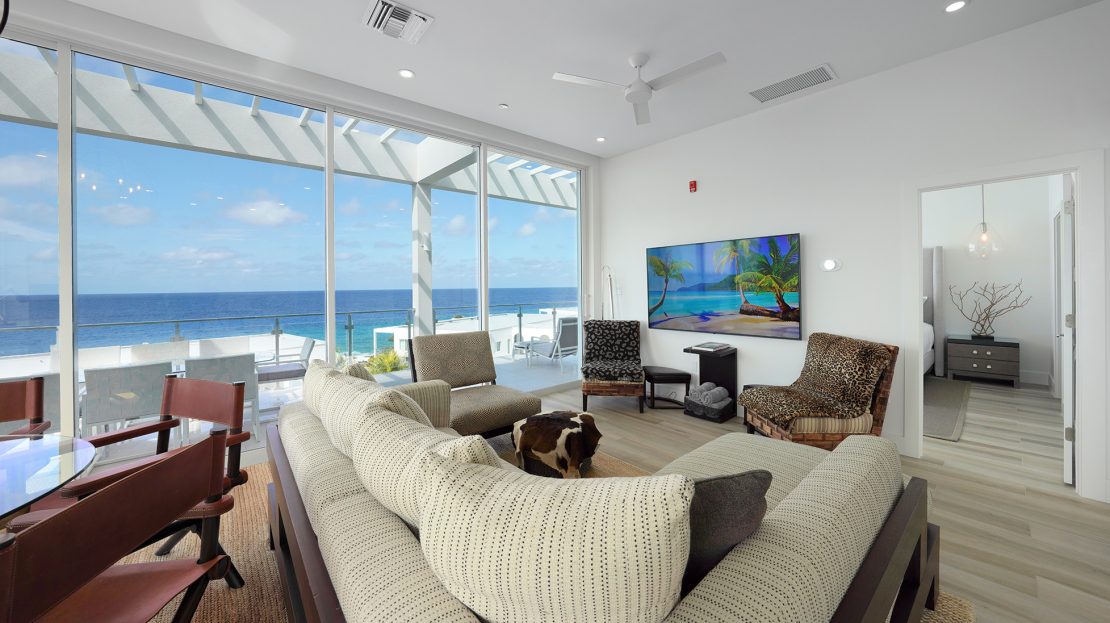 Upscale Luxury Signature Penthouse Corner residence ideally located in Northwest Point, West Bay – one of Grand Cayman’s most desirable and tranquil waterfront enclaves offering pristine diving sites with natural inlet entry. Lushly landscaped 3.5 acres with 460ft crystal blue sea frontage offers resort-style living with exceptional privacy and amazing sunset views. Featuring nearly 1900 sq ft of open-concept living space with high ceilings. Floor-to-ceiling glass doors open to a 35-foot Penthouse Terrace with uninterrupted sea and sunset views from both the main living and primary suite. Wake up to endless Sea horizons, world-class snorkelling, renowned diving and breathtaking Sunsets while being just minutes from Seven Mile Beach, Camana Bay and top dining restaurants. Walking distance to Cayman’s Turtle Centre and Dolphin Discovery. Next door to Cracked Conch Restaurant and Macabuca Tiki Bar.