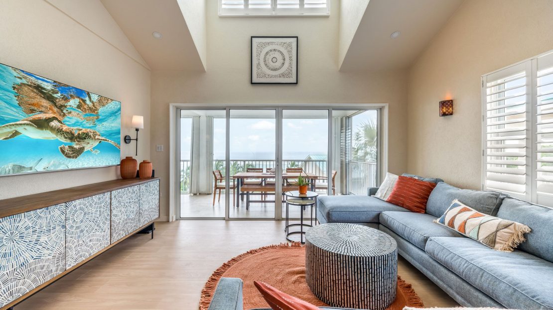 Welcome to the epitome of casual coastal elegance situated on the serene Spotts Beach – possibly the best swimming and snorkelling on Grand Cayman’s south coast. Presenting a top-level Beachfront Residence, a newly refurbished gem boasting an expansive 2,450 sq ft of comfort, where every detail speaks of refinement. This superb property offers three bright and airy bedrooms, three modernised bathrooms, a work from home mezzanine level and the unparalleled beauty of a sandy, reef protected beachfront and crystal clear Caribbean Sea right at your doorstep.