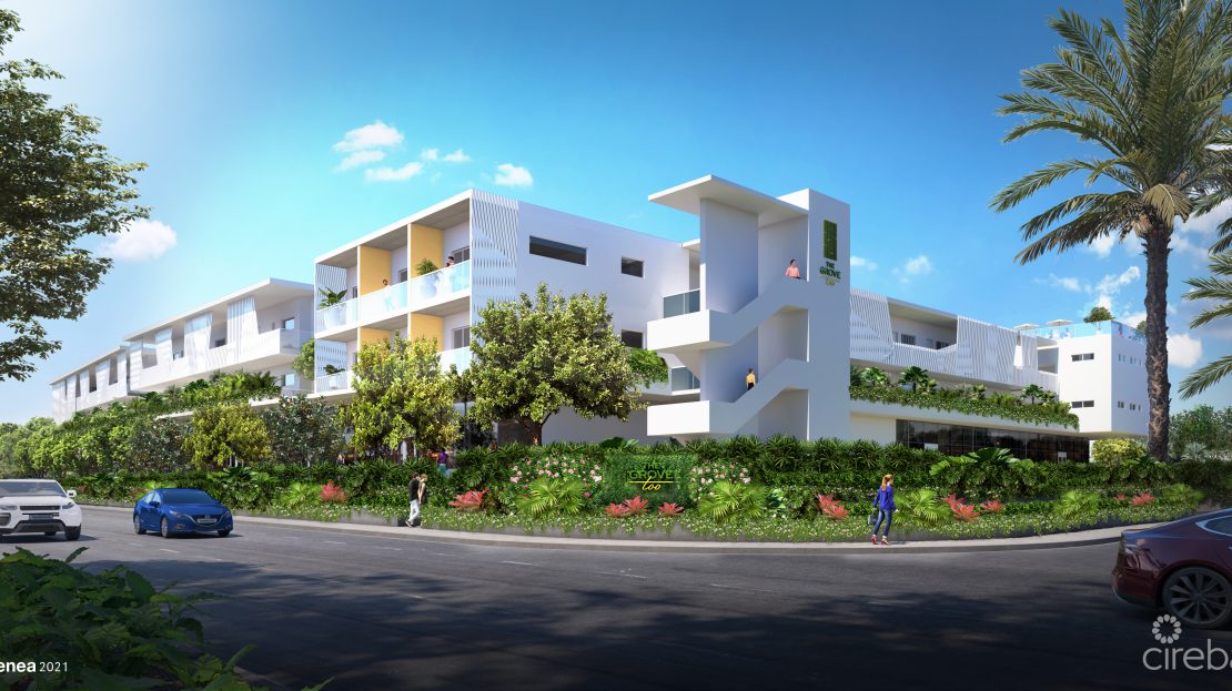 Unit #53 at The Grove Too is a modern residence within a boutique mixed-use development located just off Seven Mile Beach. The Grove Too features 68 one-, two-, and three-bedroom apartments set above Class-A commercial space and arranged around a landscaped central courtyard designed by Enea Garden Design.
