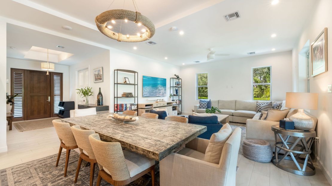 Inside, a thoughtfully designed open-plan layout unfolds, featuring a sleek kitchen, elegant dining area, and spacious living room, perfect for entertaining or unwinding.