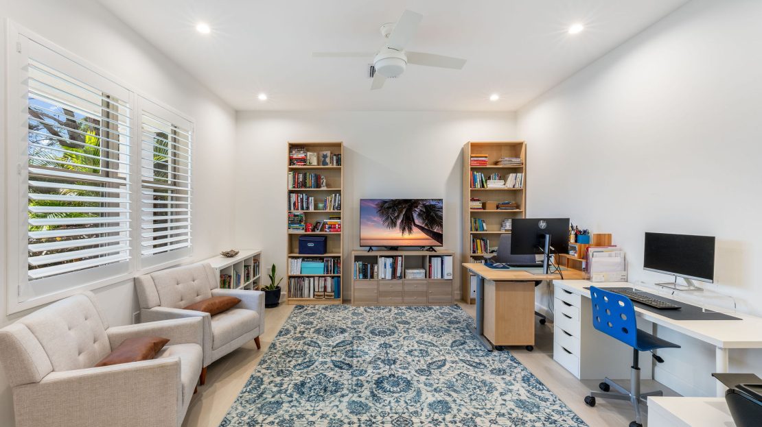 In addition to three spacious bedrooms, the home features two distinct bonus rooms: a private office/den off the entryway, perfect for working from home and a large family room/den that can serve as a flex space or easily convert to a fourth bedroom or guest suite.