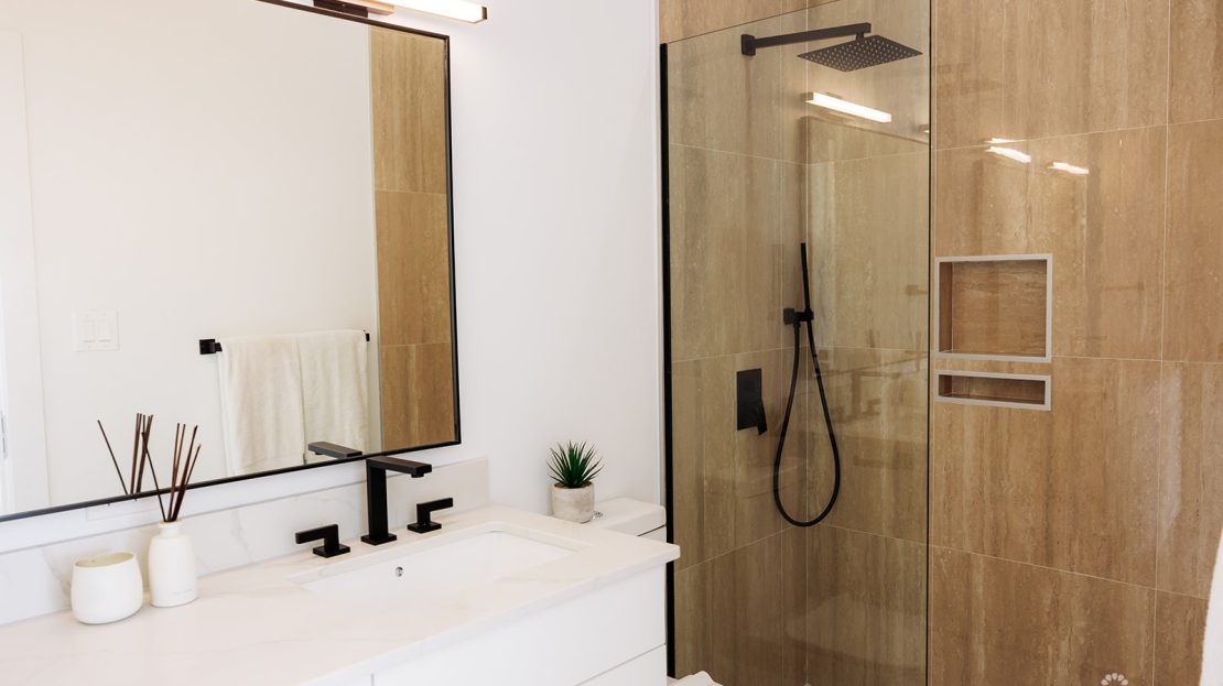 Layout: Two bedrooms, each with an en-suite bathroom, and a walk in closet off the large master bedroom.