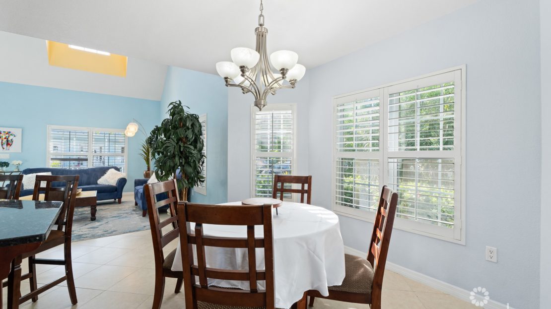 The dining area is conveniently located just off to the side of the kitchen featuring ornate bay window.