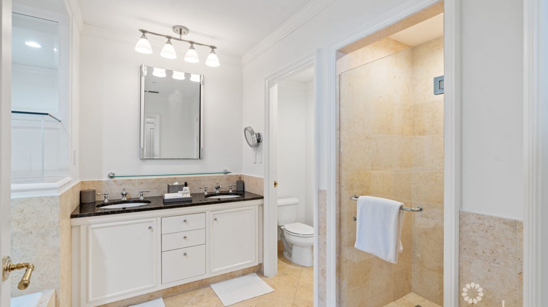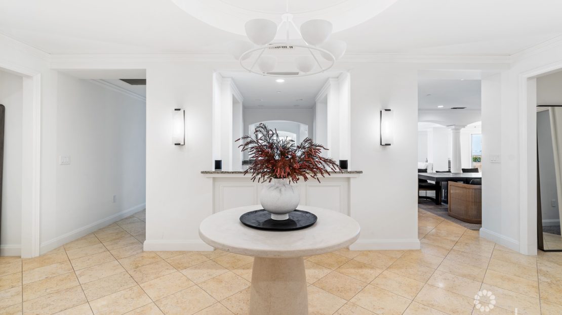 A large foyer sits at the entrance to this grand residence, leading to an open-plan living area and terrace with breathtaking views of the turquoise waters, perfect for relaxing and entertaining. Two large master suites on either side of the residence boast a private terrace with ocean views and generous spa-like bathroom with tub and shower. Two additional suites have a private balcony and en suite, and a further two bedrooms have an adjacent bathroom.