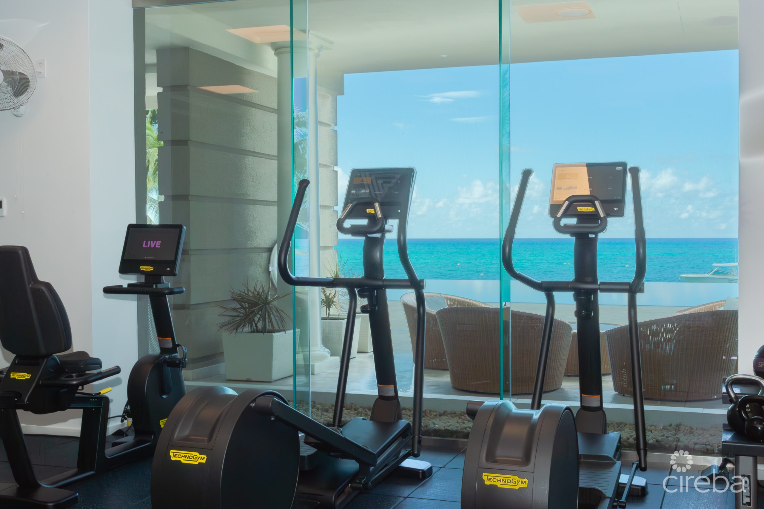 The property’s amenities elevate this residence into true luxury living in the Cayman Islands. The highlight is the extraordinary 360º infinity-edge swimming pool, a masterpiece of design that appears to dissolve into the turquoise sea beyond. Complemented by beautifully landscaped gardens, lounging areas shaded by palm trees, and a dedicated owners’ lounge, your every relaxation or entertainment need is catered to. The newly renovated owners’ lounge features drink service—either poolside or beachside on your sunbed—perfect for unwinding in style, and its commercial chef’s kitchen can comfortably accommodate larger private events. For health-minded individuals, a state-of-the-art fitness centre provides a premium environment for workouts, and the massage room is perfect for ultimate relaxation. On staff at The WaterColours there is a Concierge to help ensure that your apartment is set-up just as you need it before you arrive and a team of professionals to take care of all your needs whilst in residence. There are also house cars and drivers available, and, of course, discreet 24hr security. If you require accommodation for your own staff or guests, there are four suites on site that can be rented at cost on a first-come-first-serve basis.