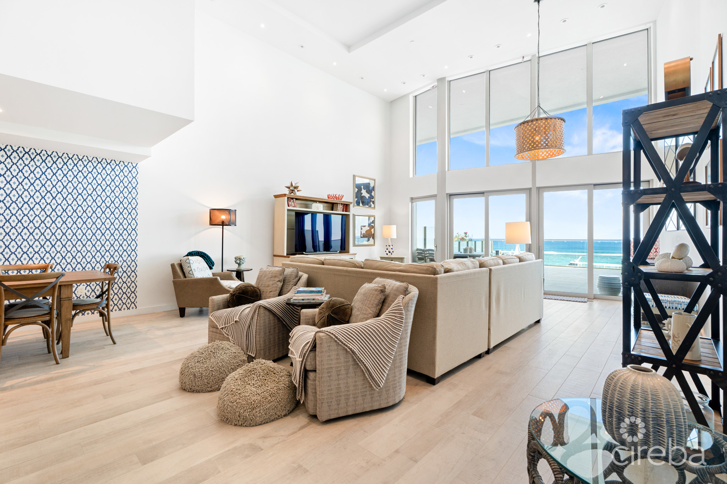 Tides 302 is a two-story villa spanning more than 3,261 sq. ft. of open-plan living area, this exceptional residence is framed by soaring 18-foot windows that capture uninterrupted views of the Caribbean Sea in all its brilliance.