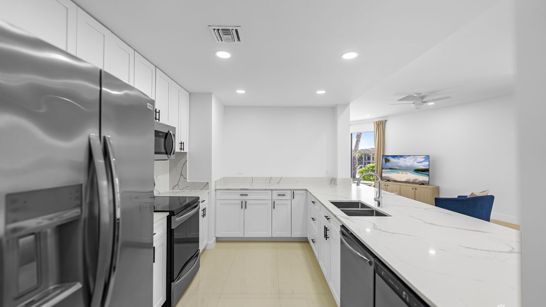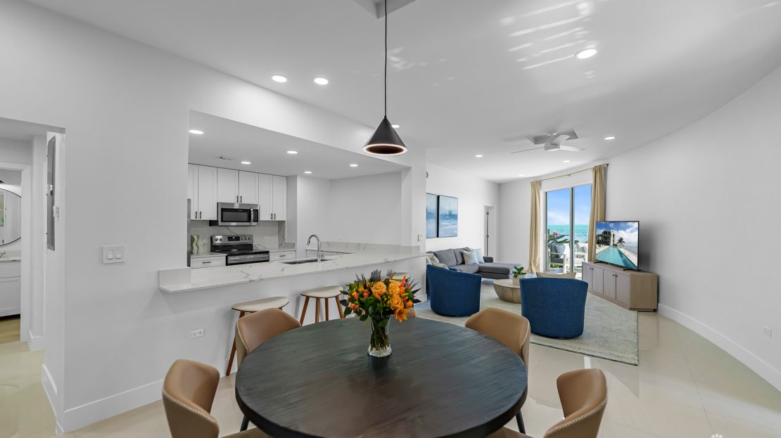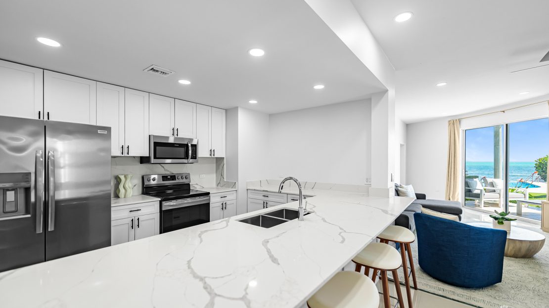 Spanning 1,837 square feet, this spacious condo features three well-appointed bedrooms, two contemporary bathrooms and a separate office space. Each room is designed to maximize comfort and functionality, with brand new furniture that complements the home’s fresh, modern aesthetic. The open-concept living area is perfect for both relaxation and entertaining, offering unobstructed views of the pristine oceanfront.