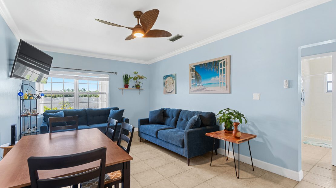 The unit has been recently refreshed with new bedroom flooring, a refreshed bathroom, and some new furniture—so it’s got that clean, modern feel without you needing to lift a finger. It’s located on the upper floor, offering a bit more privacy, and no flooding risk.