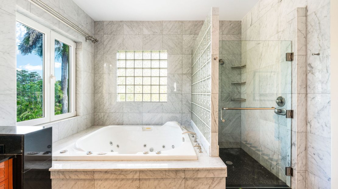 Throughout the home, beautiful marble floors, a grand spiral staircase, and gallery-like walls create the perfect backdrop for displaying exquisite artwork. The primary suite is a true sanctuary, boasting an expansive walk-in closet with stunning skylight features, and a lavish ensuite bath with an oversized jacuzzi tub and his-and-hers vanities.