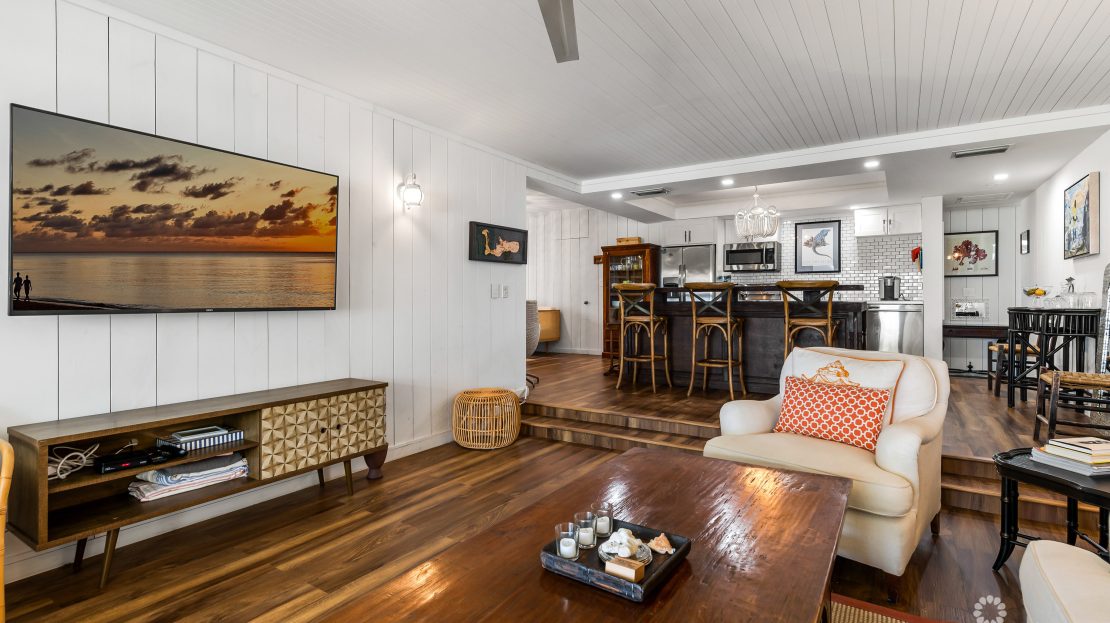 Welcome to Unit 33 in the enchanting Villas Pappagallo, where the island lifestyle comes alive! Imagine waking up to the soothing sounds of palm trees dancing in the gentle breeze and the rhythmic lull of waves crashing in the distance. This stunning two-bedroom condo seamlessly blends modern updates with the timeless charm of its original design, creating a unique oasis that feels like a permanent vacation.