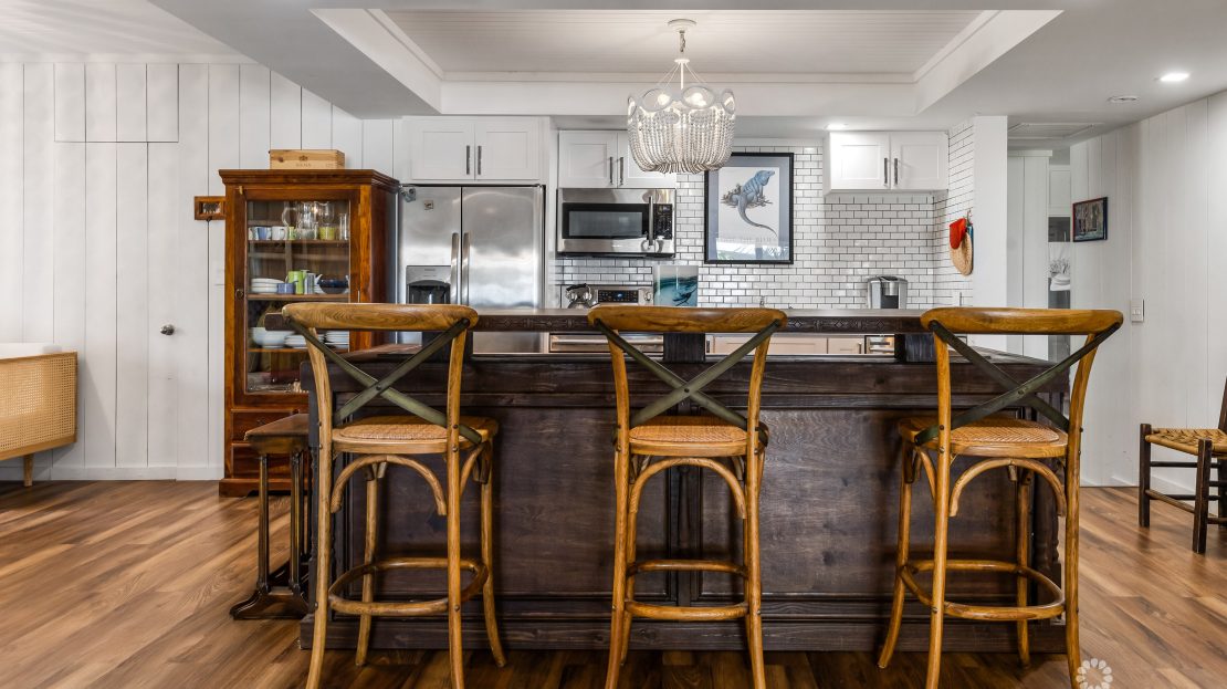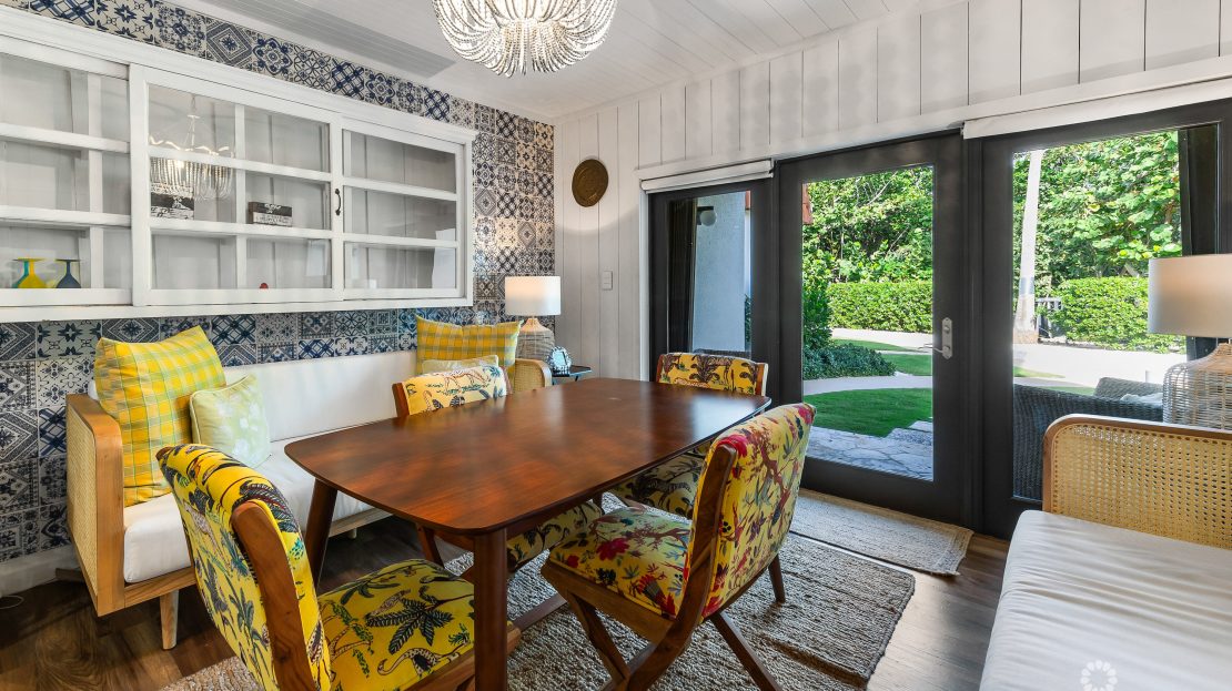 The kitchen is a delightful fusion of retro charm and contemporary functionality, perfect for whipping up culinary masterpieces or casual snacks. Its open layout invites laughter and conversation, making it an entertainer’s dream.