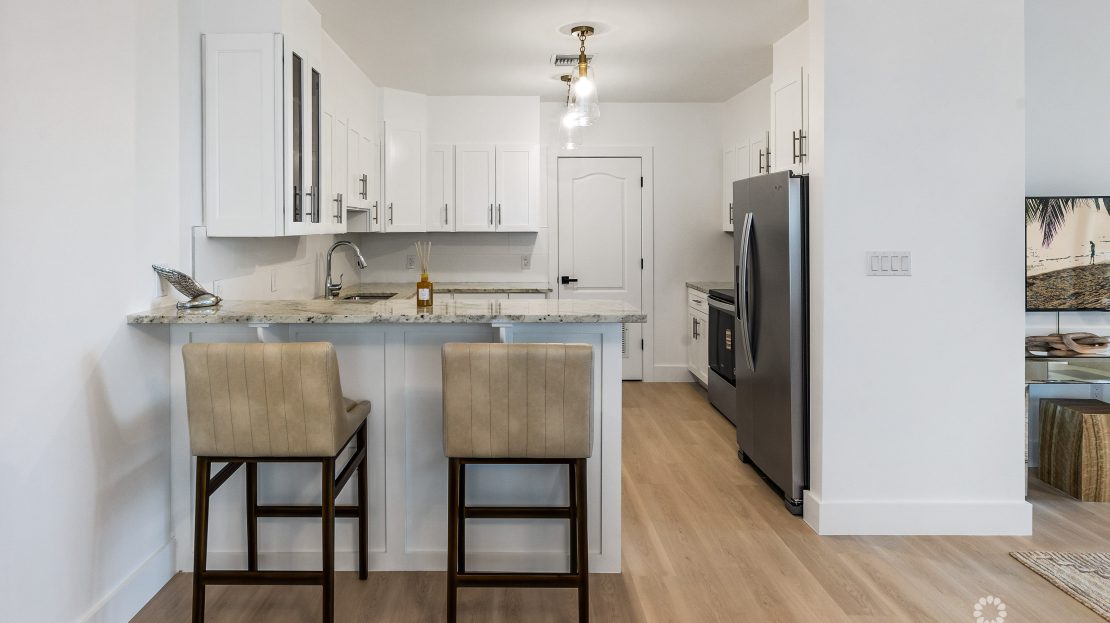 The floorplan of #17, a ground floor unit, offers a generous square footage of 1,456 square feet with direct ocean front views but also having vaulted ceilings. As a ground floor unit, #17 is steeped in natural light, plus a large dining area make this unit particularly attractive. The primary bedroom, with a large walk-in closet and ensuite bathroom, feature high ceilings throughout.