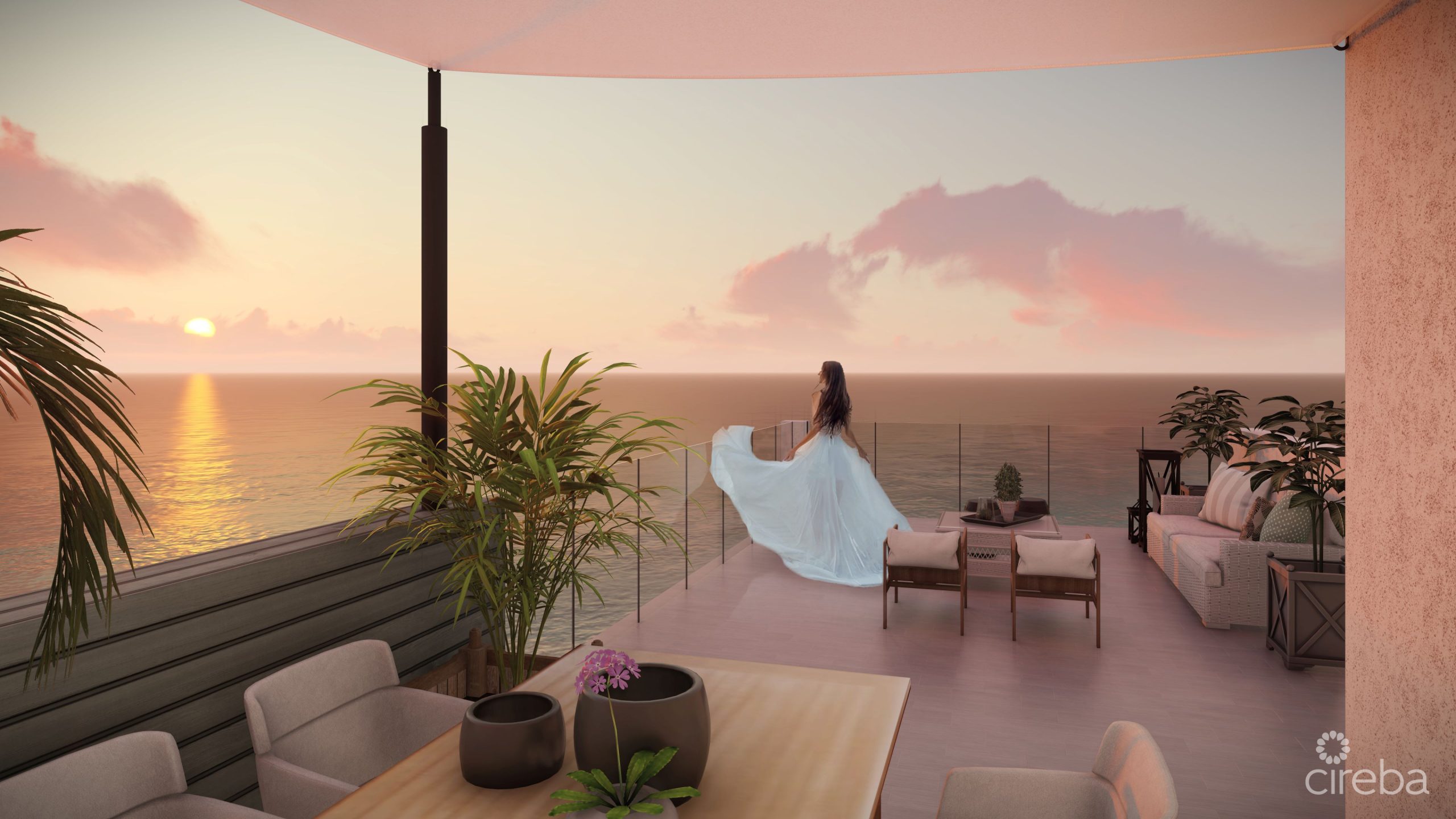 The three-storey layout spans more than 2,300 square feet with open living areas and a private oceanfront patio. The home includes energy-efficient appliances, quartz countertops, and three ensuite bedrooms. The rooftop terrace provides a large outdoor space with a built-in barbecue and wide coastal views. Residents have access to an oceanfront pool, shaded cabanas, landscaped grounds, and direct shoreline entry. The location is close to well-known dive sites, NOVA restaurant, and the wider amenities of Seven Mile Beach and Camana Bay. Completion is expected in Q3 2026. Floor plans, projected strata fees, and insurance estimates are available on request. This is an assignment sale, contact us for further details.