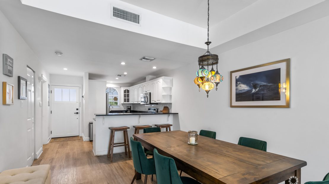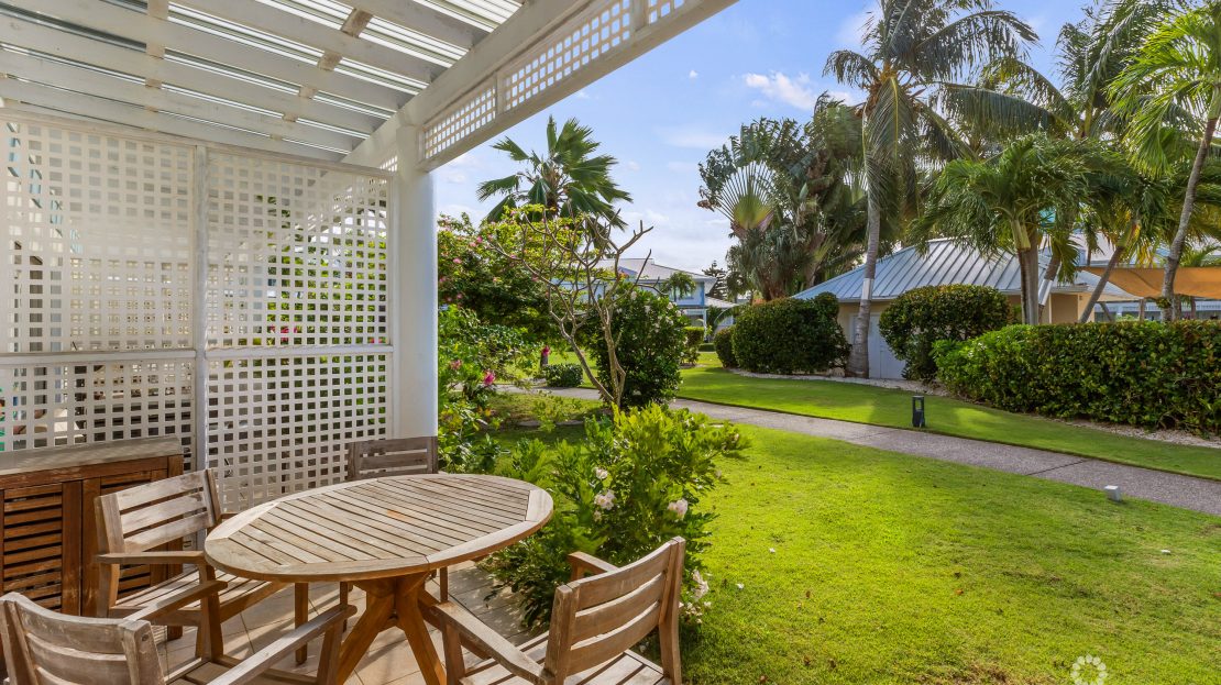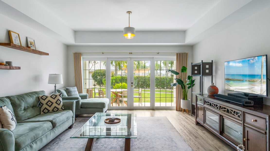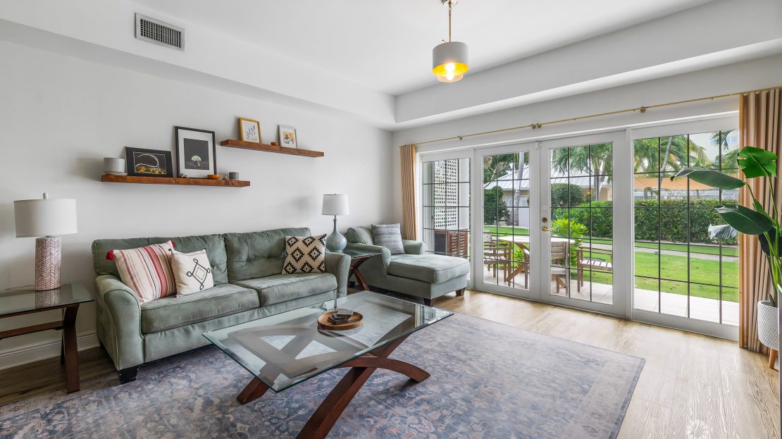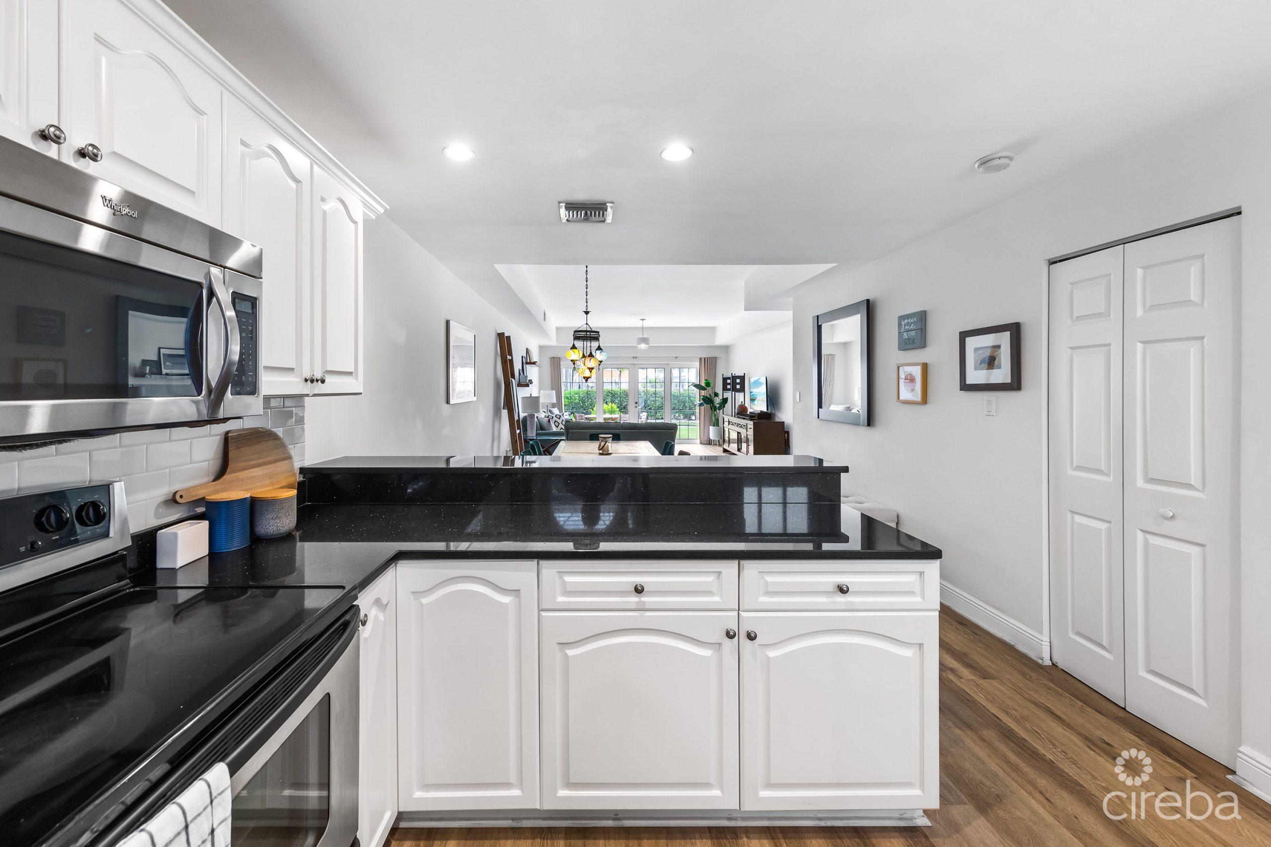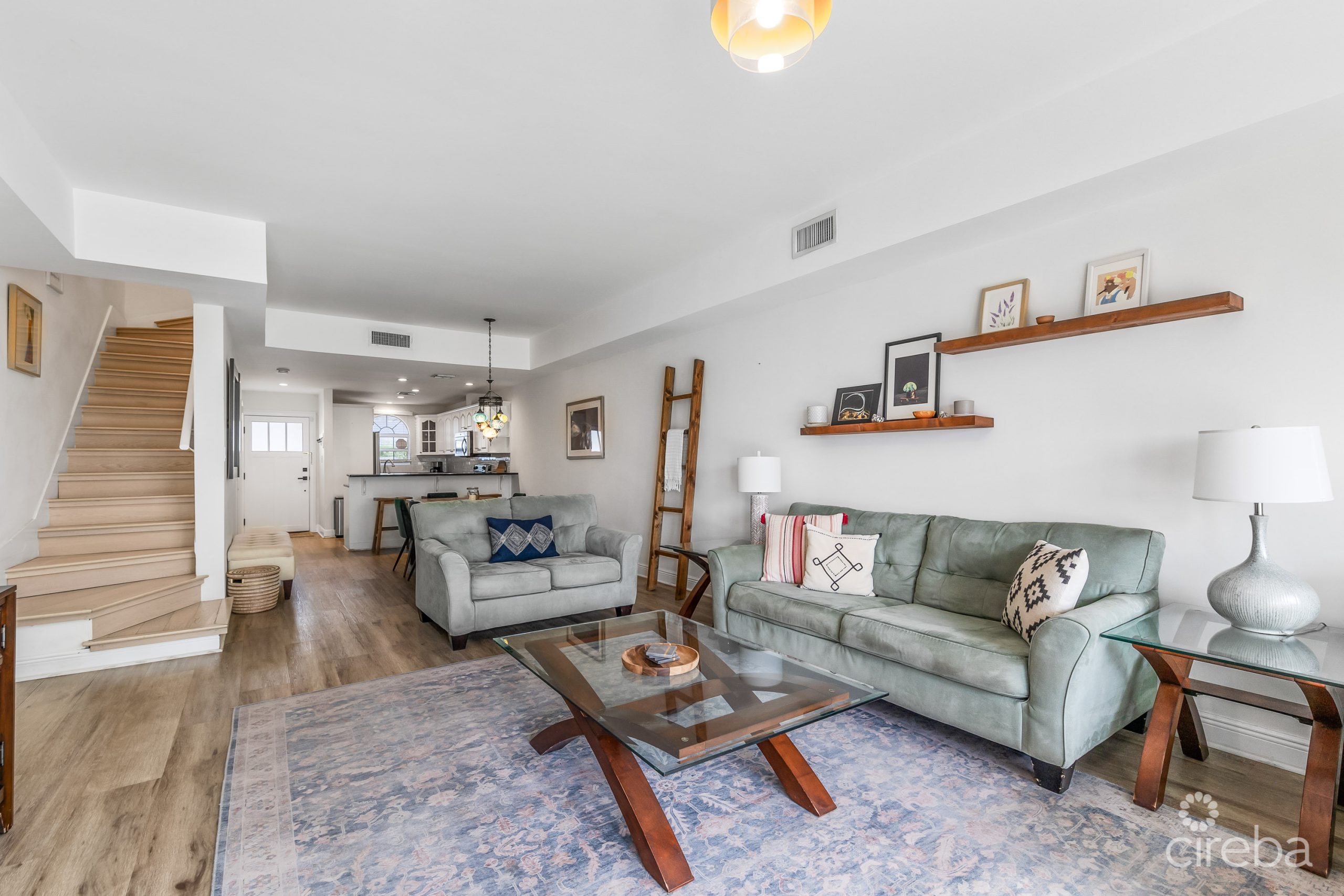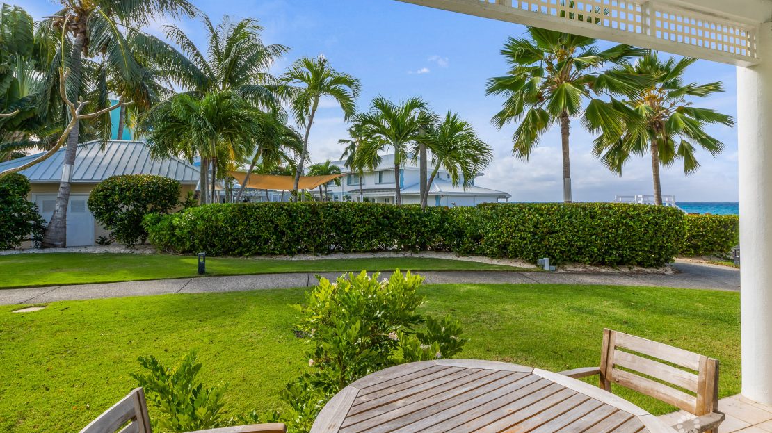 This beautifully presented townhouse spans 1,659 sq. ft. of bright, thoughtfully arranged living space, offering both privacy and a natural sense of calm. The ground floor is designed for effortless island living, with an open-plan layout that flows seamlessly from the living and dining areas onto a covered private patio—an inviting space for morning coffee, quiet afternoons, or evening unwinding while overlooking lush greenery. Upstairs, the primary suite enjoys ocean views and features a king-size bed along with a beautifully renovated bathroom complete with a bathtub and walk-in shower, while the second bedroom also offers ocean views. Tastefully furnished throughout, the home is perfectly suited for families or long-term residents seeking comfort, simplicity, and an unhurried coastal lifestyle.